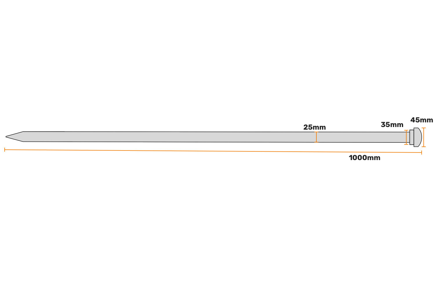 • Bovenop een 45mm dikke bolkop voor het makkelijk in de grond slaan van de haring