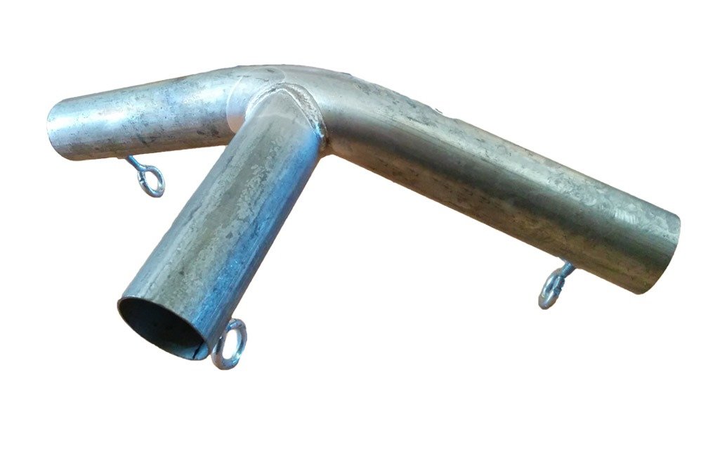 Dit koppelstuk bevindt zich zowel in de punt van nokframe als in de zijkant van het frame. In dit koppelstuk komen 3 buizen samen.