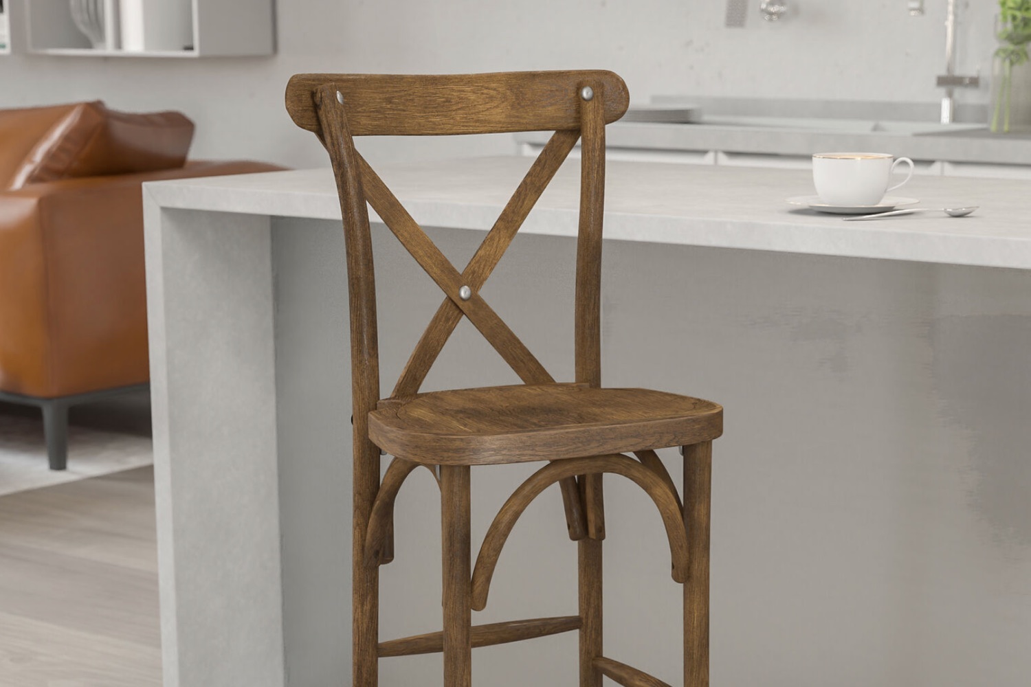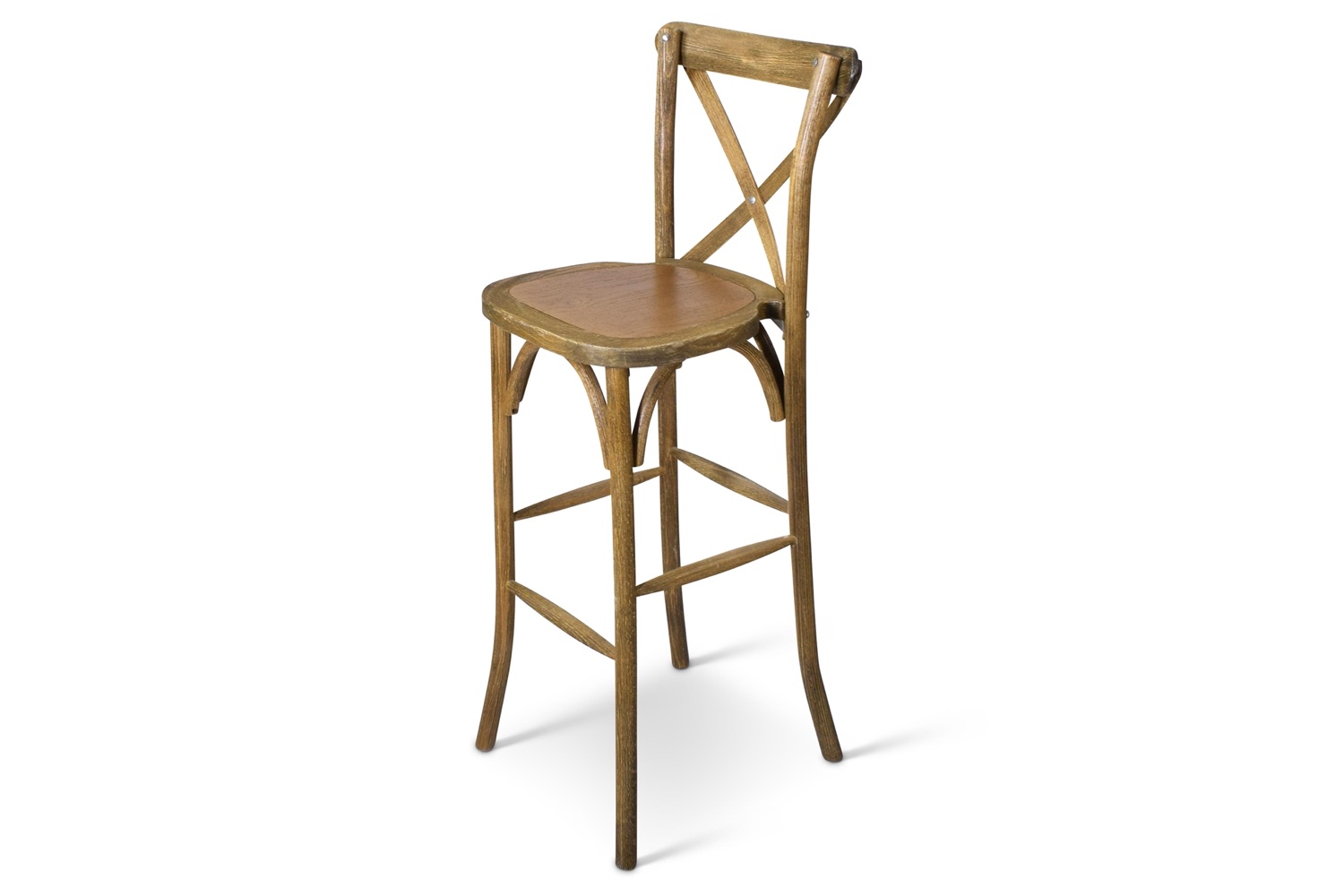 De Crossback barkruk en stoel zijn weer helemaal terug van weggeweest. Deze barkruk heeft een elegante rugleuning en is daarmee ideaal om een bijzondere uitstraling te creëren op bijvoorbeeld bruiloften aan statafels. Het model kan in verschillende sferen worden gebruikt en geeft een landelijke of rustieke uitstraling. De barkruk is gemaakt van beukenhout en met een blanke lak afgelakt.