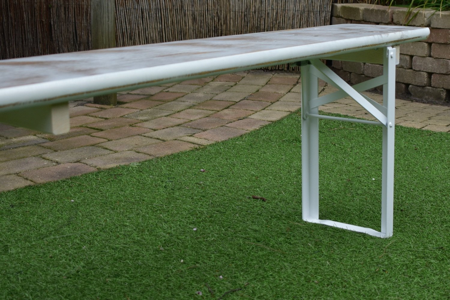 De inklapbare bierbank white wash is uitgevoerd in de Premium variant.