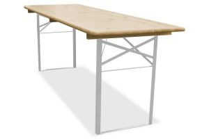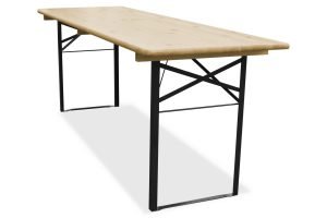De biertafel is gemaakt van Europees dennenhout met een bladdikte van 28mm. Dit blad is meerdere keren blank gelakt.