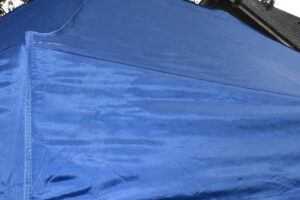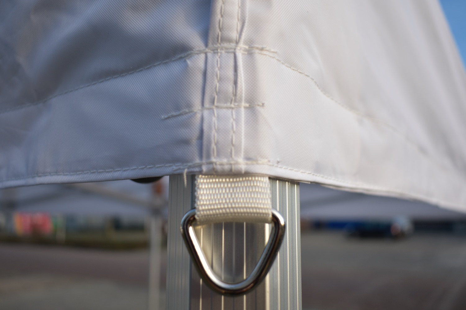 De hoeken beschikken over een verstevigd stuk en klittenband om deze vast te zetten aan de staanders. Halverwege de lengte en breedte van de tent zitten gespen waarmee het dakzeil extra vastgezet kan worden aan het frame. Rondom aan de onderste rand van het dakzeil zit lus-klittenband waar je zijwanden aan kunt bevestigen.