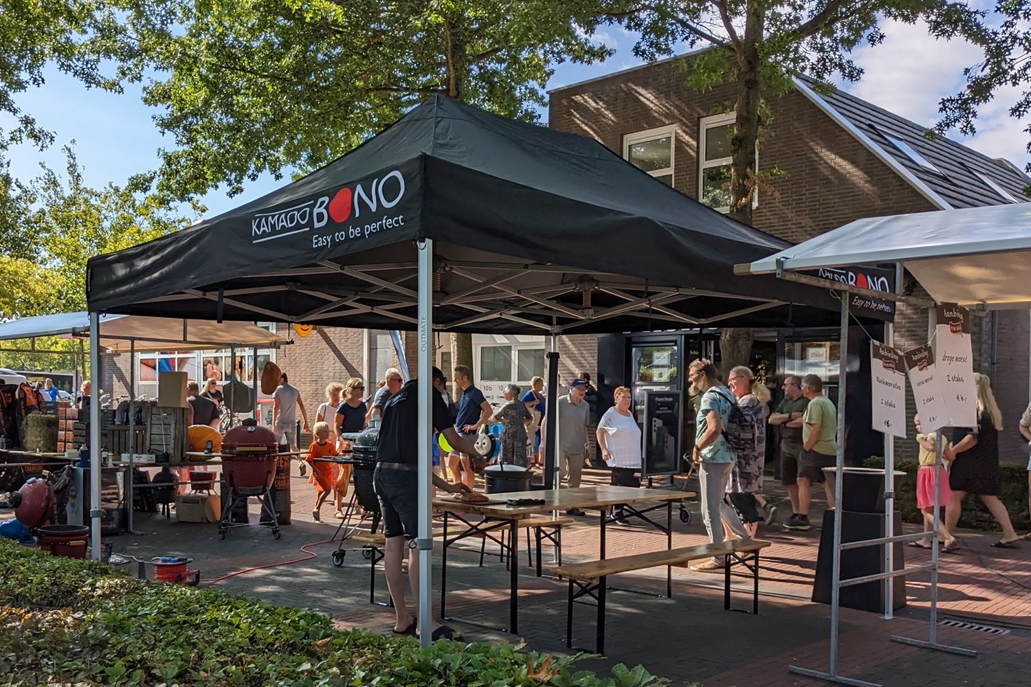 Geweldige tent die wij gebruiken voor onze bloemenwinkel. Mooie uitstraling en mbt afmeting toch snel en makkelijk neer te zetten en weer in te klappen.