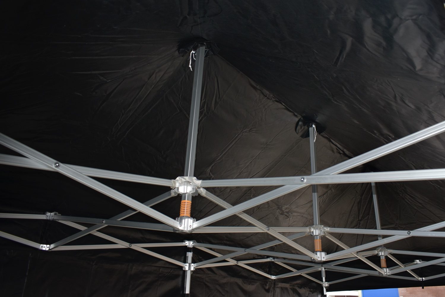 Deze Easy up partytent van 3 bij 6 meter heeft een vloeroppervlakte van 18 m² en is uitgevoerd in de best mogelijke kwaliteit. Een dikwandig aluminium harmonica buizenframe met aluminium verbindingen. De staanders zijn uitgevoerd in gewalst hexagon profiel en hebben een buitenmantel diameter van maar liefst 50mm zodat deze uiterst sterk zijn. Met een grote voetplaat eronder staat deze tent stevig op zijn plaats. Het systeem wordt door middel van het schaarmechanisme uit elkaar getrokken en met gemakkelijke en veilige kliksystemen vastgezet. De koppelingen en scharen zijn allen vastgezet met hoogwaardige RVS bouten en borgmoeren. Het dakzeil blijft op spanning staan door de hoogwaardige stalen veer tussen om de steunpalen. De dakondersteuning is voorzien van plastic kap die in het extra verstevigde deel van het dakzeil valt zodat het tegen een stootje kan.