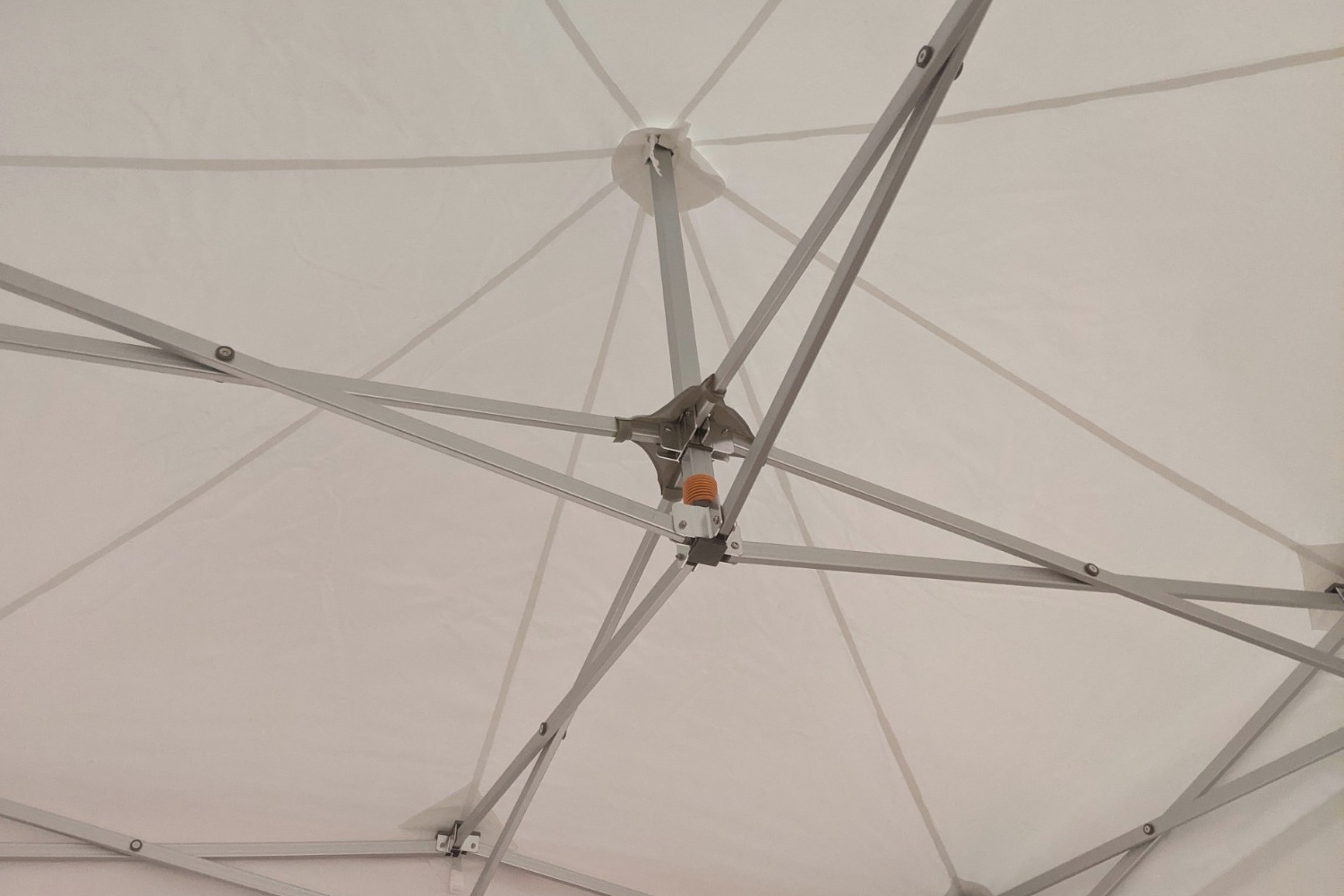 Deze Easy up partytent van 4 bij 4 meter heeft een vloeroppervlakte van 16 m² en is uitgevoerd in de best mogelijke kwaliteit. Een dikwandig aluminium harmonica buizenframe met aluminium verbindingen. De staanders zijn uitgevoerd in gewalst hexagon profiel en hebben een buitenmantel diameter van maar liefst 50mm zodat deze uiterst sterk zijn. Met een grote voetplaat eronder staat deze tent stevig op zijn plaats. Het systeem wordt door middel van het schaarmechanisme uit elkaar getrokken en met gemakkelijke en veilige kliksystemen vastgezet. De koppelingen en scharen zijn allen vastgezet met hoogwaardige RVS bouten en borgmoeren. Het dakzeil blijft op spanning staan door de hoogwaardige stalen veer tussen om de steunpalen. De dakondersteuning is voorzien van plastic kap die in het extra verstevigde deel van het dakzeil valt zodat het tegen een stootje kan.
