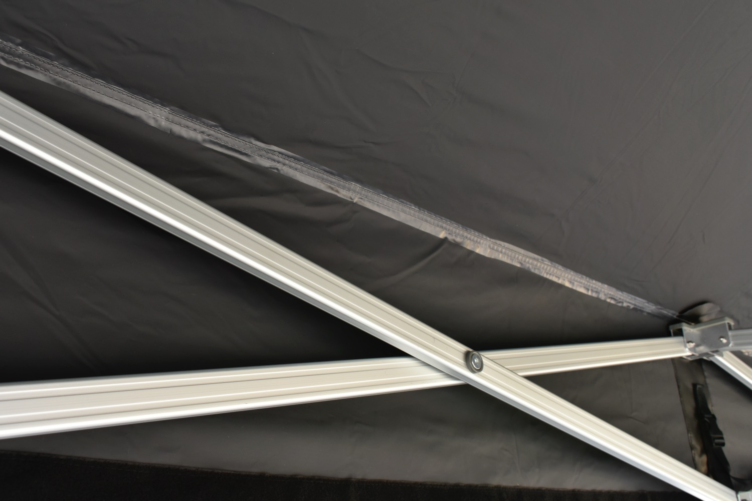 Deze Easy up partytent van 4 bij 8 meter heeft een vloeroppervlakte van 32m² en is uitgevoerd in de best mogelijke kwaliteit. Een dikwandig aluminium harmonica buizenframe met aluminium verbindingen. De staanders zijn uitgevoerd in gewalst hexagon profiel en hebben een buitenmantel diameter van maar liefst 50mm zodat deze uiterst sterk zijn. Met een grote voetplaat eronder staat deze tent stevig op zijn plaats. Het systeem wordt door middel van het schaarmechanisme uit elkaar getrokken en met gemakkelijke en veilige kliksystemen vastgezet. De koppelingen en scharen zijn allen vastgezet met hoogwaardige RVS bouten en borgmoeren. Het dakzeil blijft op spanning staan door de hoogwaardige stalen veer tussen om de steunpalen. De dakondersteuning is voorzien van plastic kap die in het extra verstevigde deel van het dakzeil valt zodat het tegen een stootje kan.