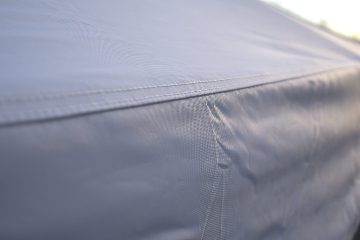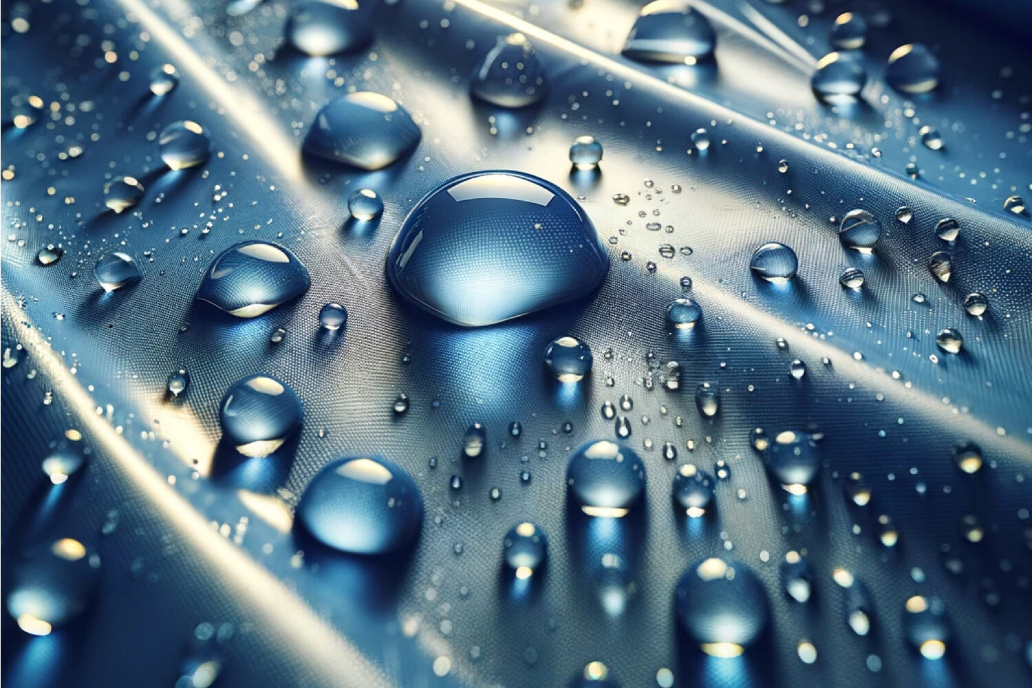 Een fijn geweven polyester buitenlaag met een waterdichte PVC-coating aan de binnenkant