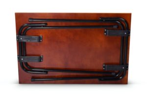 Veelgebruikte examentafel, erg gemakkelijk in en uit te klappen en staat zeer stabiel. Het blad is gemaakt van 15mm dik gelakt multiplex. Het onderstel bestaat uit buizen van ⌀22 mm met een wanddikte van 1,25mm. Het onderstel is zwart gelakt.