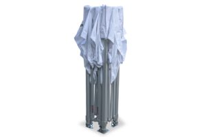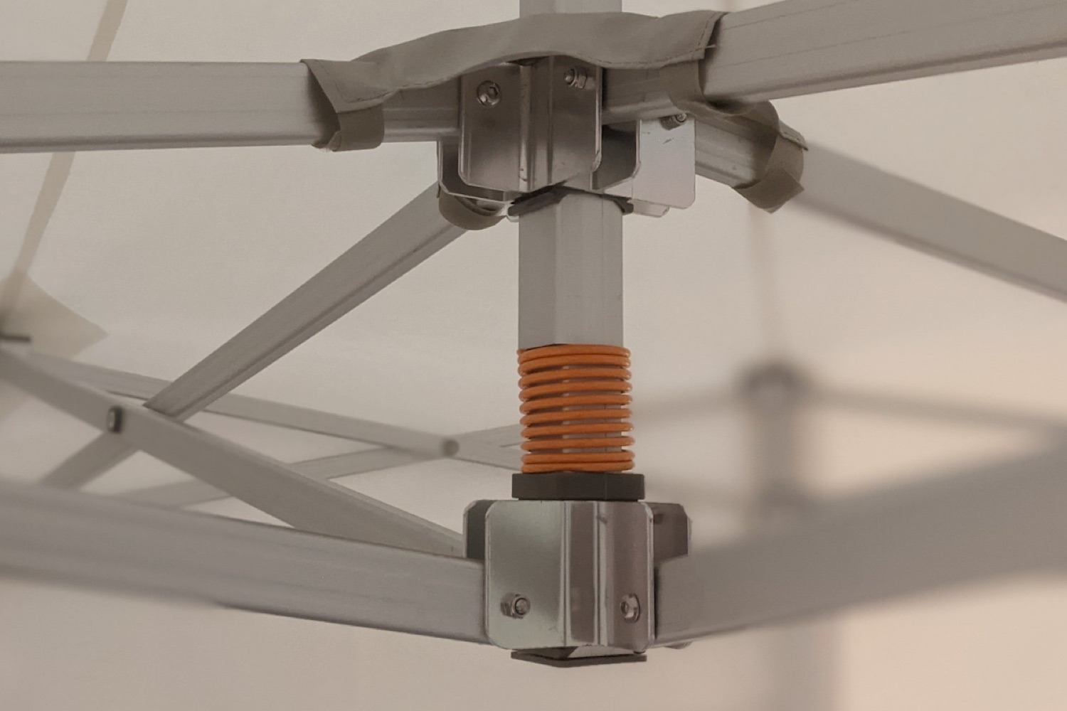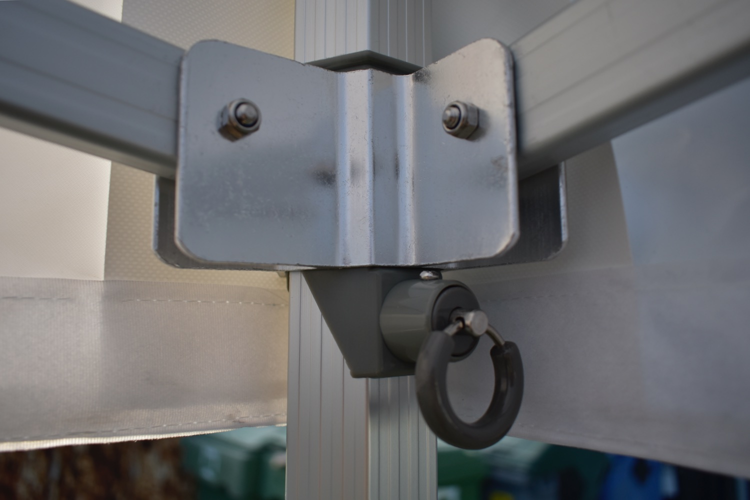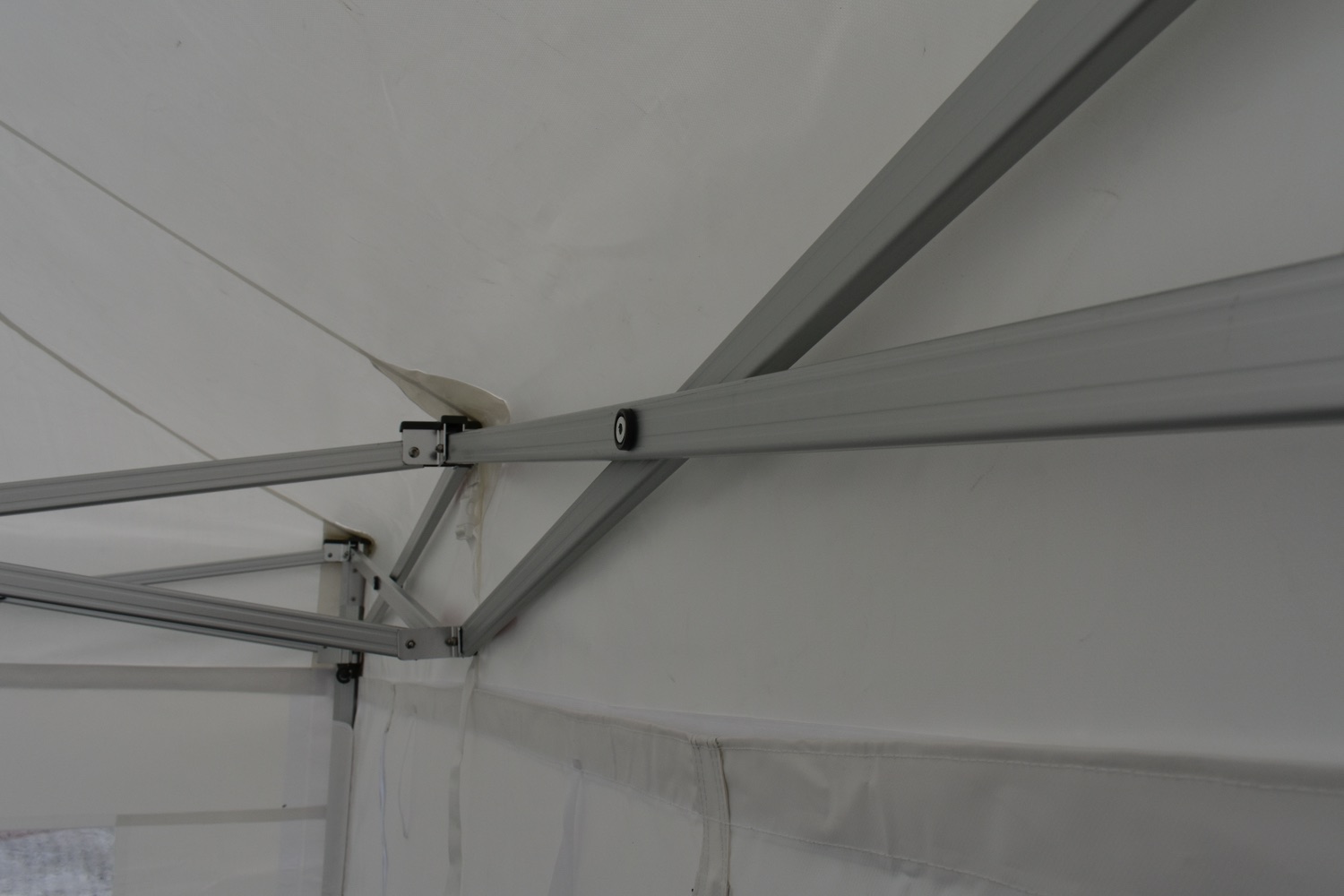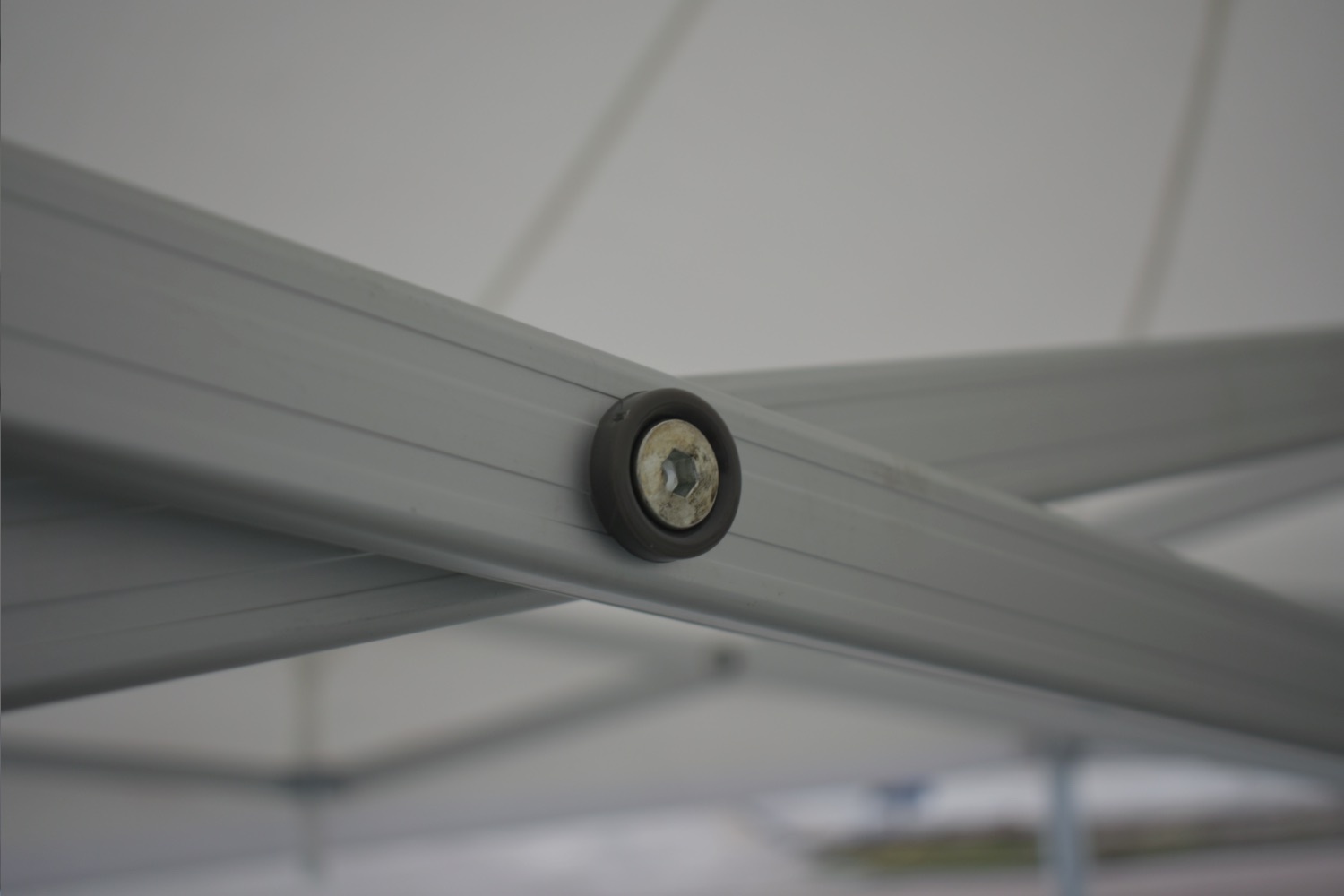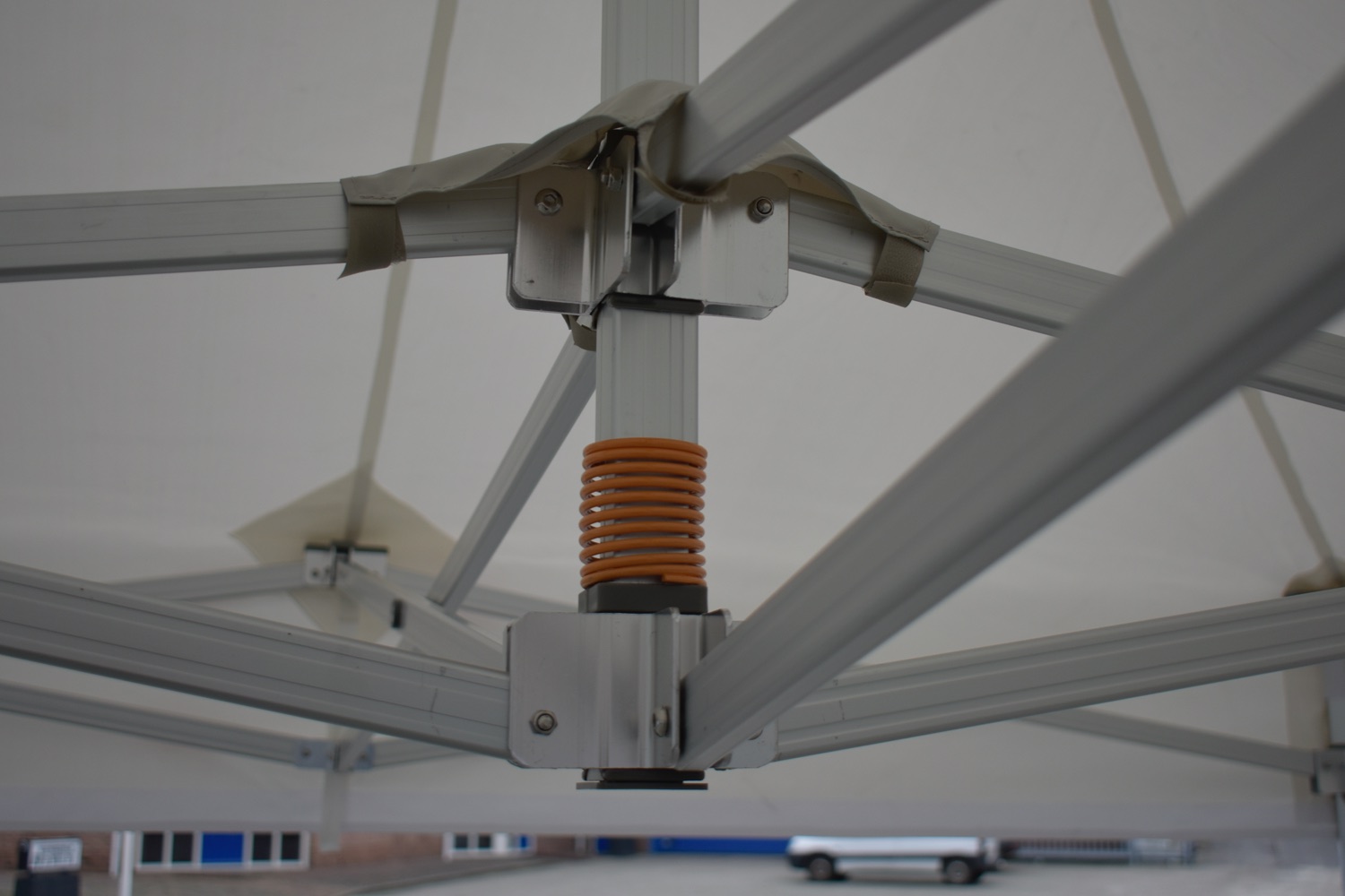 Volledig compleet frame voor een Easy Up partytent 3×4,5. Dit frame is van uiterst goede kwaliteit en beschikt over volledig aluminium koppelstukken en verbindingstukken. De bouten zijn RVS met borgmoeren. Draaiende en bewegende delen zijn voorzien van hardplastic binnenmateriaal om schuiven te bevorderen. Dit frame schuift zeer eenvoudig in en uit. Met perfecte trekringen en een goede veer ter ondersteuning van het dakzeil.
