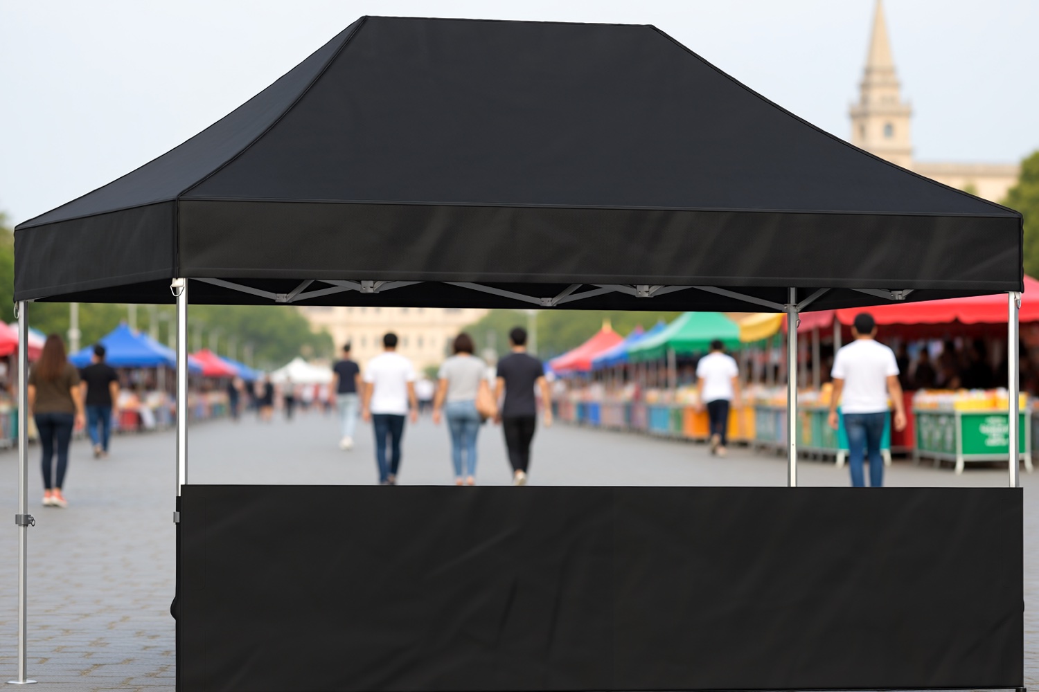 De 4,5 meter brede halve zijwand voor Easy Up Professional, gemaakt van 500D polyester met PVC-coating en dubbel gestikte, waterdichte naden, biedt met 5 cm breed klittenband een stevige bevestiging rondom de staanders, wat zorgt voor verbeterde levensduur en winddichtheid.