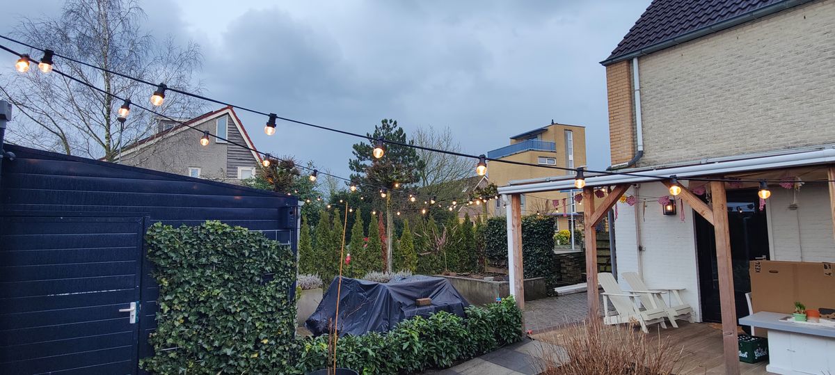 Sfeerverlichting in partytenten, tuinen, terrassen en marktkramen.