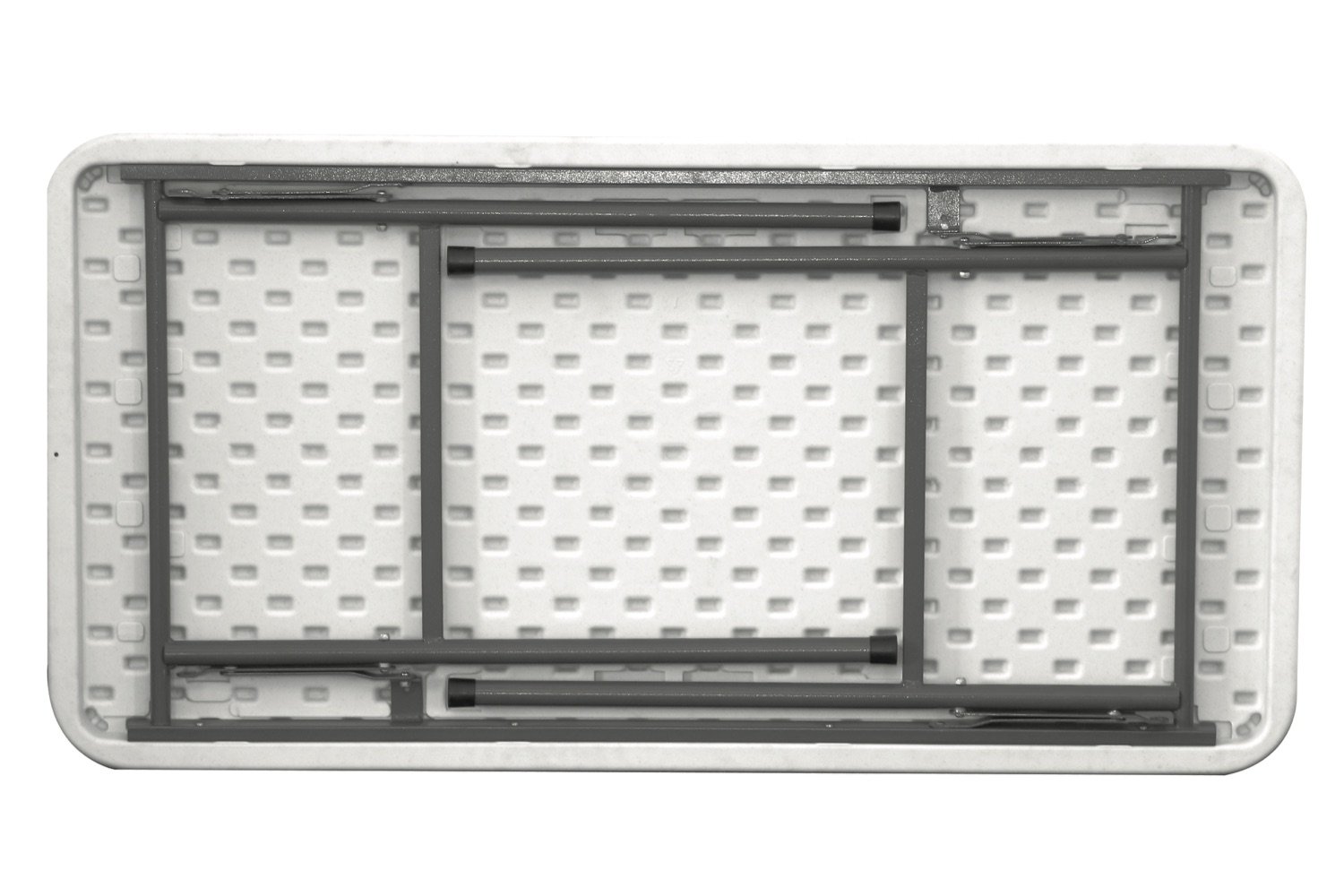 Het frame van de klaptafel is gemaakt van grijs gelakte stalen buizen. Het frame beschikt over een extra verstevigingsstang binnenin het blad.
