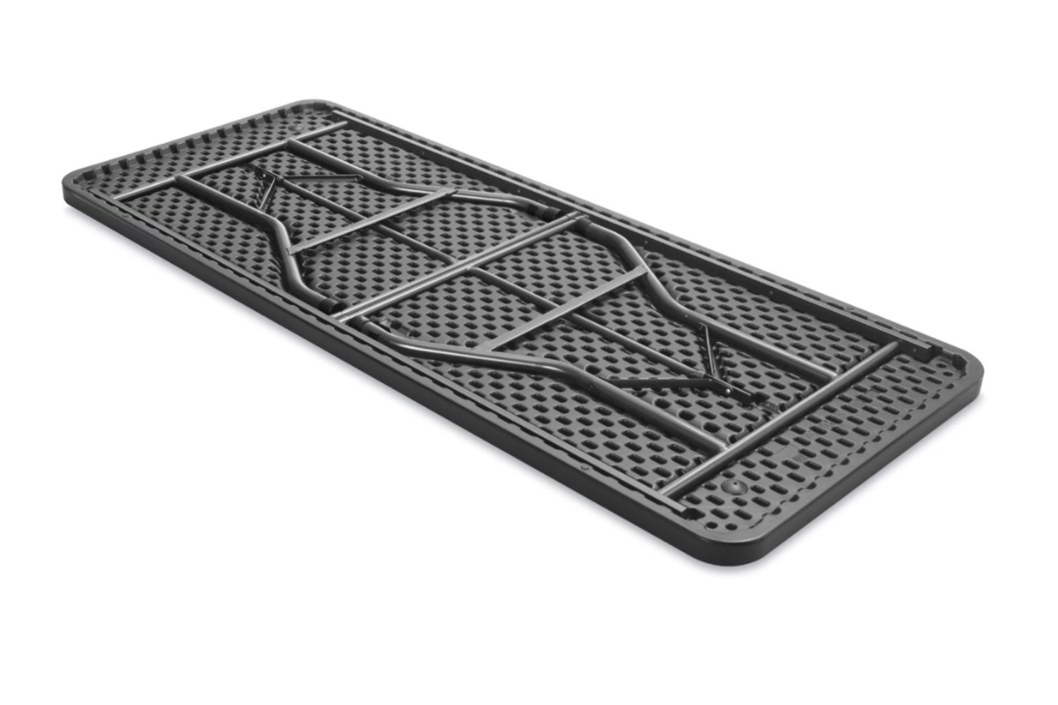 De professionele lichtgewicht klaptafel met HDPE blad is uit één stuk gegoten en heeft een verstevigd zwart stalen frame, waardoor hij steviger is dan vergelijkbare modellen en geschikt is voor zowel binnen- als buitengebruik. Door het ontbreken van een scharnier in het midden biedt de tafel extra stevigheid.