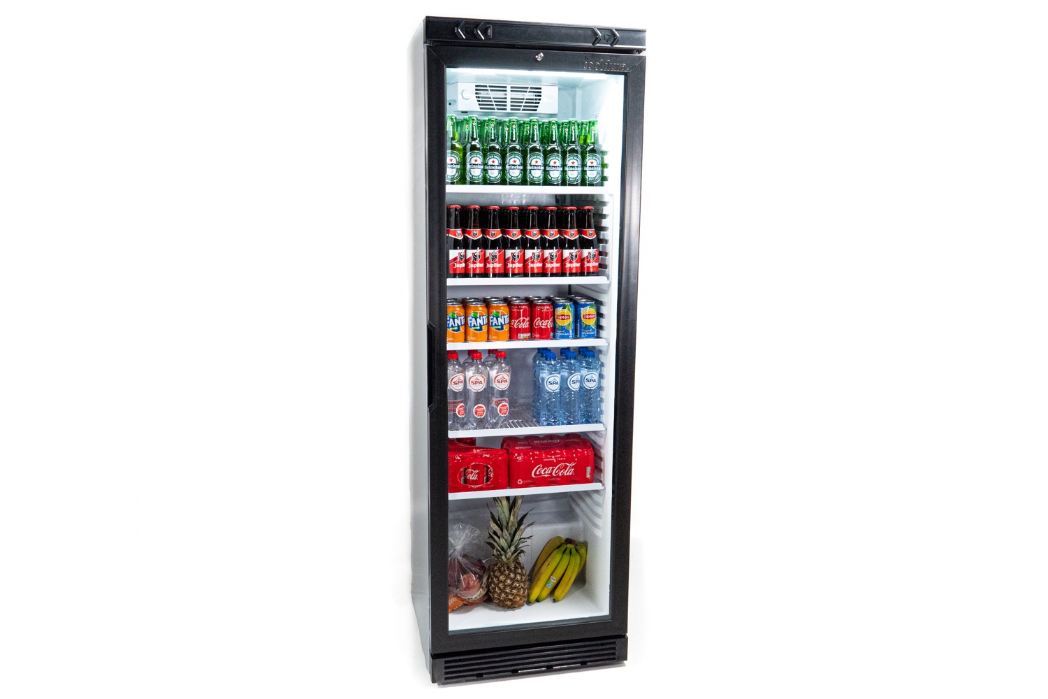 Met deze mooie horeca koelkast beschik je over een flinke ruime koeling. De staande koelkast is gemakkelijk te openen met het stevige handvat aan de glazen deur. Met de speciaal voor deze koelkast gemaakte trolley kun je de staande koelkast super makkelijk vervoeren naar je feestlocatie of terug in het magazijn. De 5 schappen zijn goed te verdelen, je kunt de schappen namelijk elke 12mm plaatsen in de koelkast.