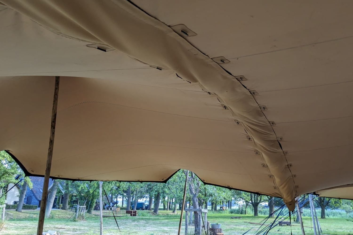 De regengoot voor stretchtenten, ook wel koppelgoot genoemd, is de ideale oplossing om twee stretchtenten waterdicht met elkaar te verbinden. Deze innovatieve accessoire zorgt ervoor dat regenwater netjes wordt afgevoerd, zodat je een grotere overdekte ruimte creëert zonder dat water tussen de tenten door sijpelt.