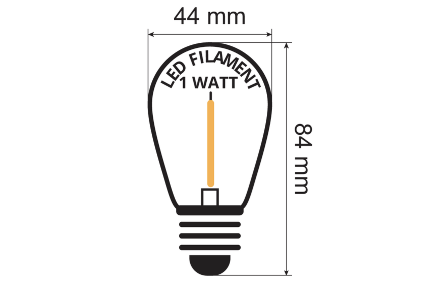 De filament ledlamp heeft een iets peervormige vorm. Deze 1W filament is vergelijkbaar met een 8 watt gloeilamp en heeft een stuk lagere lichtopbrengst. De filament lampen beschikken over een stralingshoek van 360 graden en stralen een mooi en egaal licht uit.