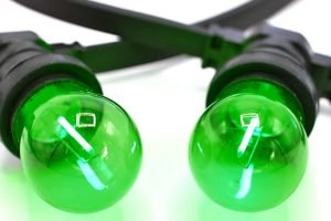 De filament in de lamp, het verticale streepje, straalt zelf groen licht uit. Hierdoor komt de lichtkleur groen mooi tot zijn recht. Bij andere aanbieders zie je dat ze bij gekleurde filament lampen warm witte LEDs gebruiken en dat de kleur groen wordt gecreëerd door enkel een groene kap. Bij die ledlampen is de kleur groen veel minder vol van kleur.