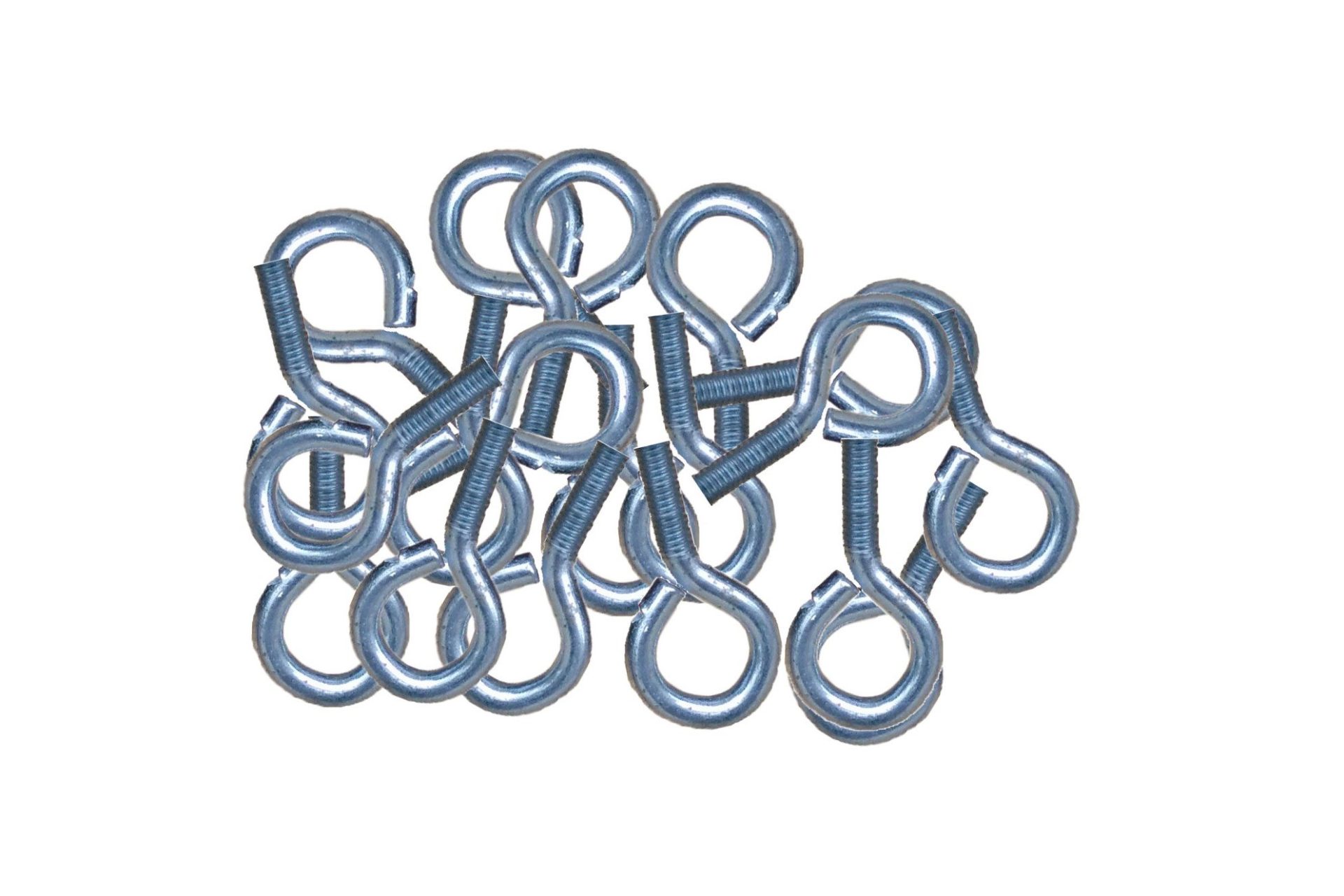 Op de koppelstukken van zitten moeren gelast, deze oogbouten zijn dus geschikt om de buizen mee vast te zetten in de koppelstukken.