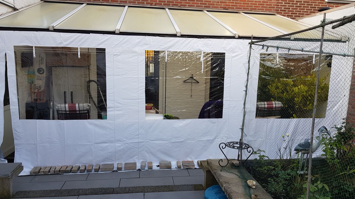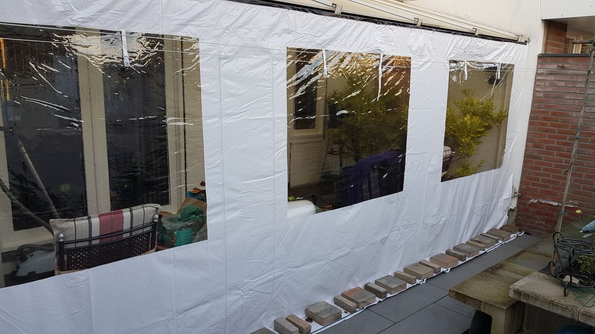 Onze zijwanden en overkapping zeilen hebben ronde oogringen rondom in het zeil zitten. Om de zeilen te kunnen bevestigen aan je houten overkapping kun je deze met elastieken vastzetten.