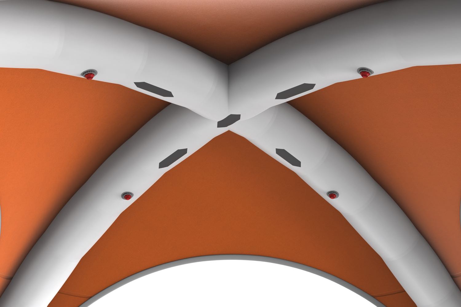 De optionele luifel biedt een mooie gelegenheid als entree. Deze luifel rits je vast aan het zeil en is optioneel te plaatsen. Je kunt dus altijd later de luifel plaatsen en opblazen.