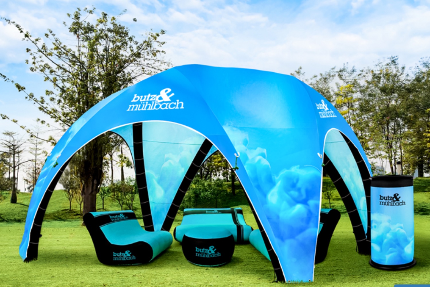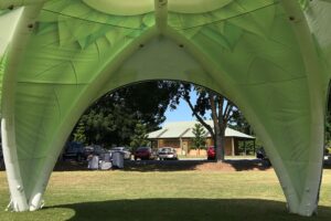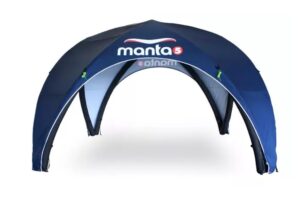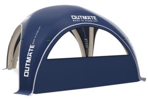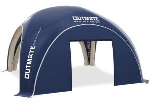 Deze tent is verrassend windbestendig, zelfs zonder vaste delen, mits correct verankerd. Bedrukking volledig naar jouw wens, rechtstreeks uit de rugtas door één persoon op te zetten binnen 5-10 minuten, dat maakt deze opblaasbare promotietent tot een groot succes voor jouw marketingactiviteiten.