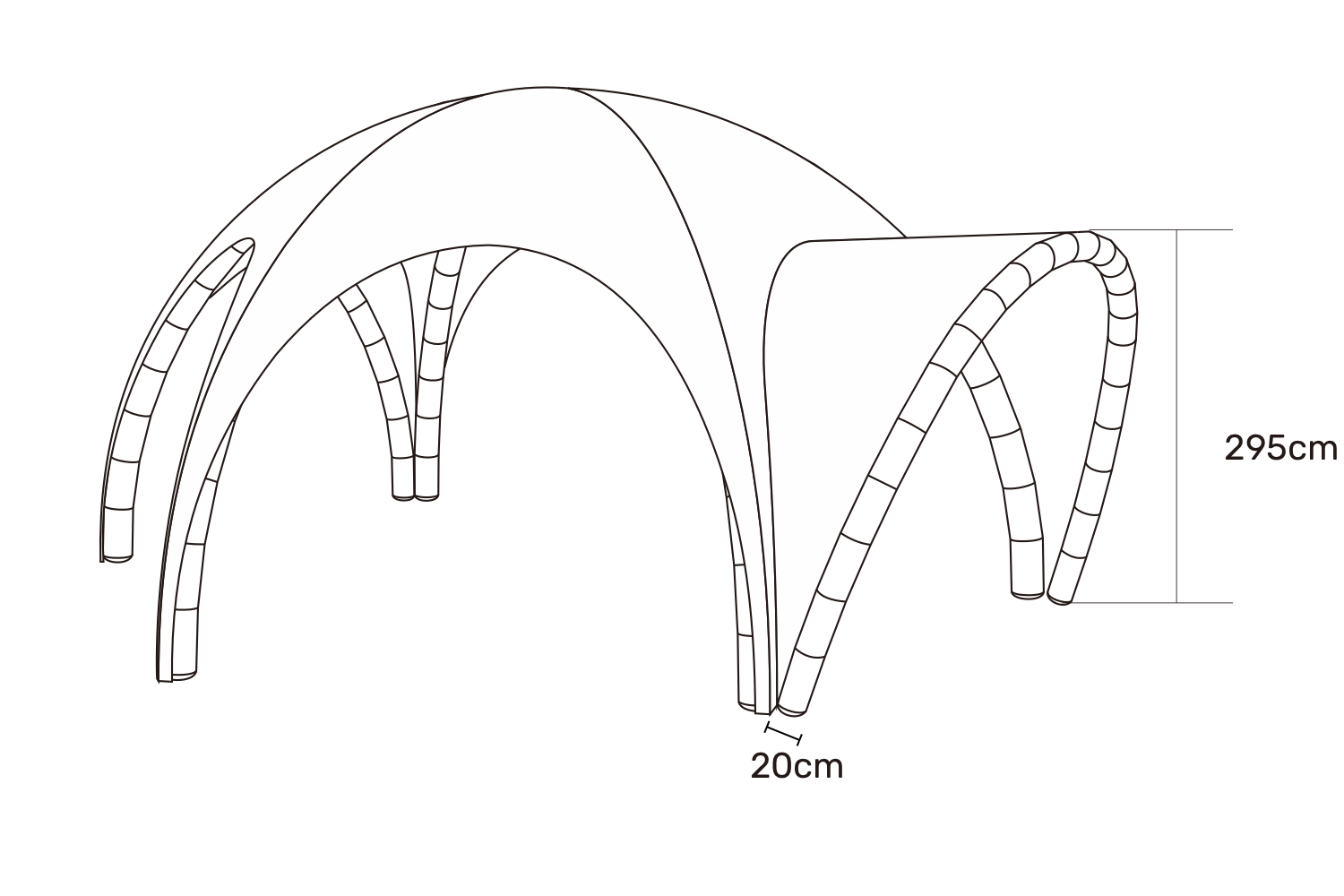 Voor extra flexibiliteit kunnen één of meerdere luifels worden toegevoegd, elk met een hoogte van 295 cm. De luifels creëren een uitnodigende entree en kunnen gemakkelijk aan het dakzeil worden geritst.