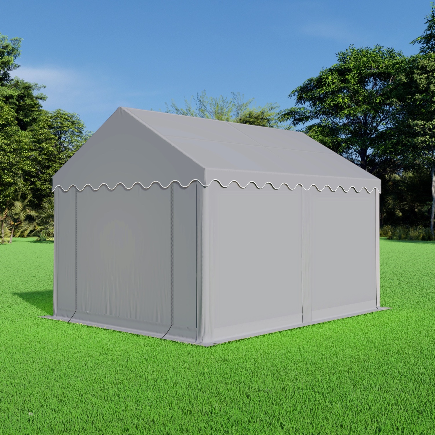 Deze tent van 3 bij 4 heeft een totaaloppervlakte van 12m² waardoor je een geschikte oppervlakte hebt om minder grote goederen op te slaan. De voorkant met ritsen van deze opslagtent is 3 meter breed en 4 meter lang. Het uitgekiende frame van de opslagtent beschikt over een grondframe en nokverstevigingsbuis. De premium PVC opslagtenten kunnen langere tijd buiten worden opgezet waarbij het wel verstandig is om deze goed te verankeren met bijvoorbeeld de stormbandenset.