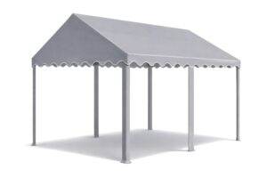 De opbouw van het frame van de opslagtent 4×3 bestaat uit volledig gegalvaniseerde metalen buizen met een diameter van 38mm en een wanddikte van 1mm. De koppelstukken hebben een diameter van 42mm met een wanddikte van 1mm die ook volledig gegalvaniseerd zijn.