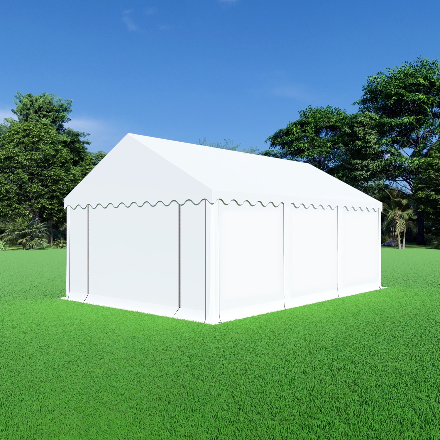 Verreweg de meest verkochte afmeting tent. Met een breedte van 4 meter en een lengte van 6 meter past deze opslagtent overal en met een oppervlakte van 24m² biedt deze afmeting opslagtent ruimte aan bijvoorbeeld:
