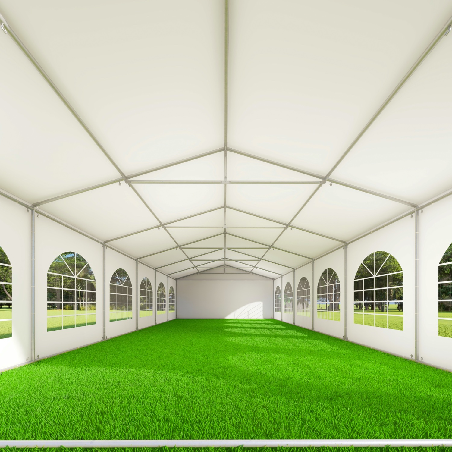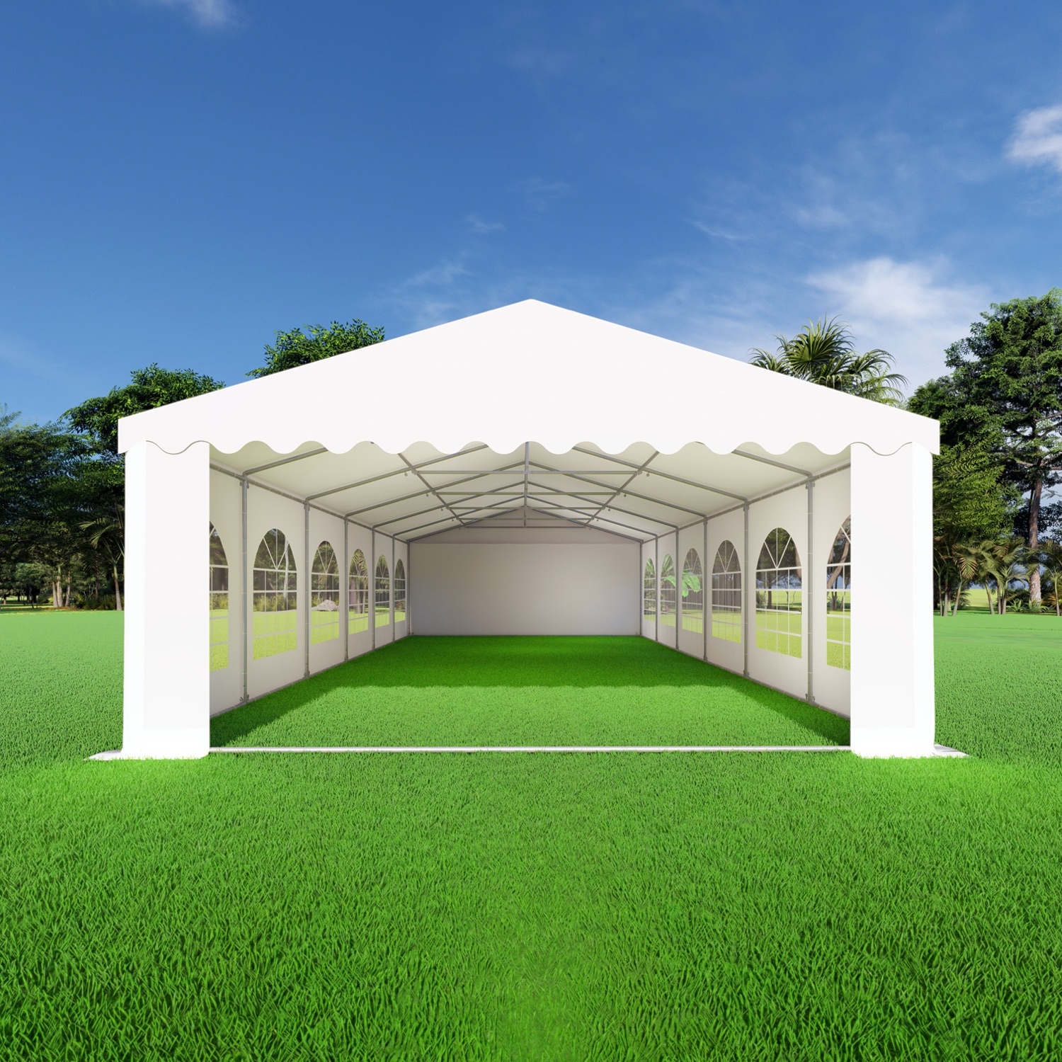De opslagtent 5×12 PVC Premium heeft 2 eindwanden met deur. Beide eindwanden beschikken over een verschillende afmeting deur, zie extra informatie voor de afmetingen van de deur. De deuren worden gemaakt door de ritsen te openen, het zeil op te rollen en vast te zetten.