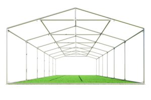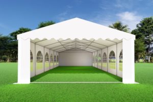 Met een breedte van 5 meter en lengte van 12 heb je totaal 60m2 oppervlakte ter beschikking. De opslagtent 5×12 PVC Premium is uitermate geschikt om wat langere tijd achtereen opgezet te blijven staan. bijvoorbeeld als deze een weekend, week of meerdere weken moet blijven staan. De opslagtent 5×12 PVC Premium heeft een erg degelijk frame inclusief nokversteviging en grondframe. Met dikke stevige PVC zeilen van 550 gram per m2 beschik je over een superieure partytent. Met de gebruiksaanwijzing erbij is het opzetten met 3 personen binnen 1,5 – 2 uur te realiseren.