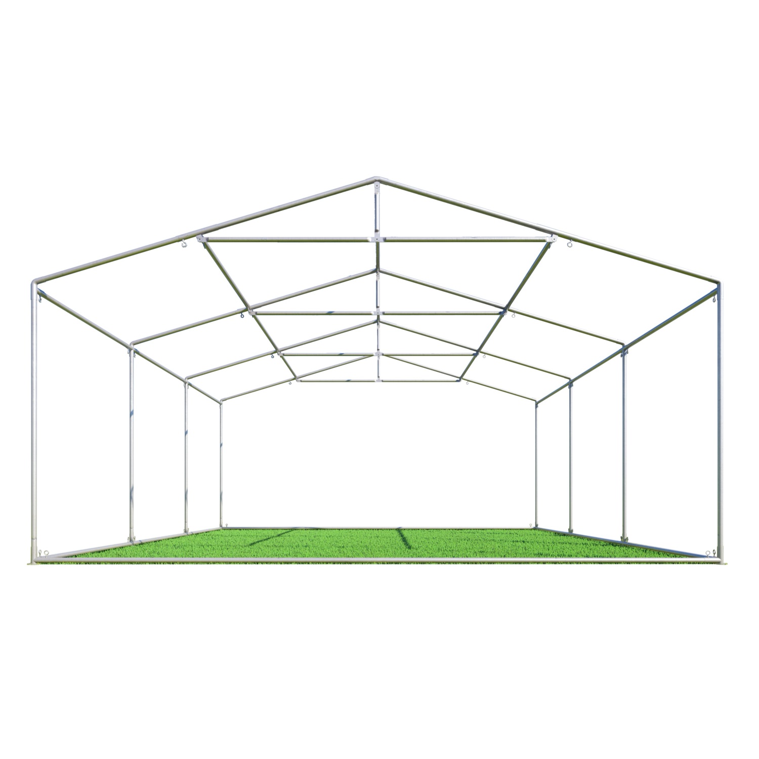 De opslagtent 5×6 heeft een uitgebreid frame dat zeer stevig en stabiel staat dankzij de toevoegingen grondframe en nokversteviging. Daarnaast worden alle buizen en koppelstukken aan elkaar gekoppeld met oogbouten die vastgezet worden in de moeren op de koppelstukken waardoor het één geheel wordt. De buizen en koppelstukken zijn volledig van binnen en buiten gegalvaniseerd zodat deze niet roesten. De buizen hebben een diameter van 38mm en de koppelstukken 42mm.