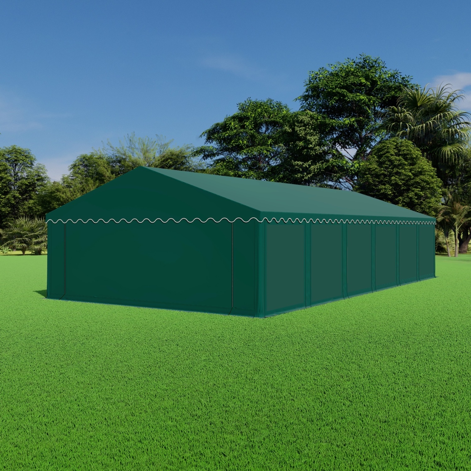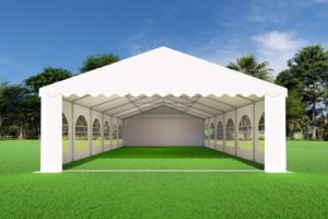 Met een breedte van 6 meter en lengte van 12 heb je totaal 72m2 oppervlakte ter beschikking. De opslagtent 6×12 PVC Premium is uitermate geschikt om wat langere tijd achtereen opgezet te blijven staan. bijvoorbeeld als deze een weekend, week of meerdere weken moet blijven staan. De opslagtent 6×12 PVC Premium heeft een erg degelijk frame inclusief nokversteviging en grondframe. Met dikke stevige PVC zeilen van 550 gram per m2 beschik je over een superieure partytent. Met de gebruiksaanwijzing erbij is het opzetten met 3 personen binnen 1,5 – 2 uur te realiseren.