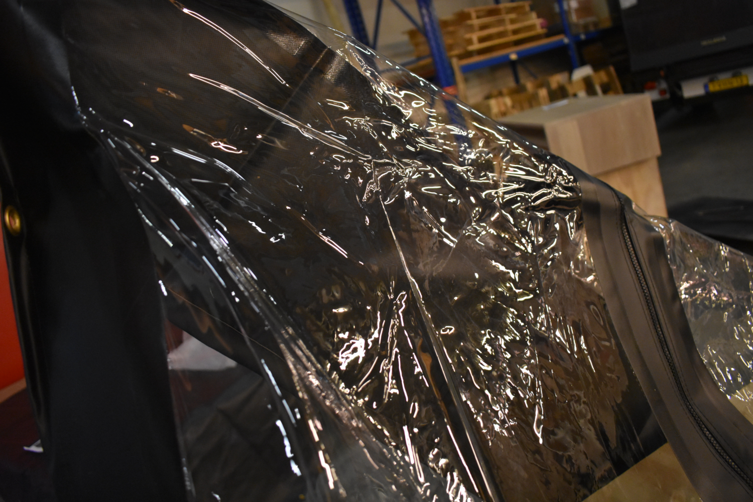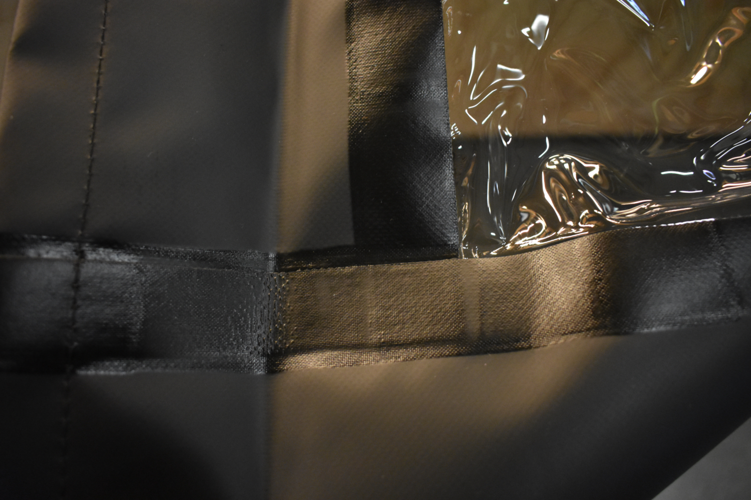 Kies je voor transparant zeil dan wordt de 5cm rand dubbelgeslagen en voorzien van 5cm zwarte ‘wind webbing” dit maakt het extra stevig en nog beter bestand tegen uitscheuren.