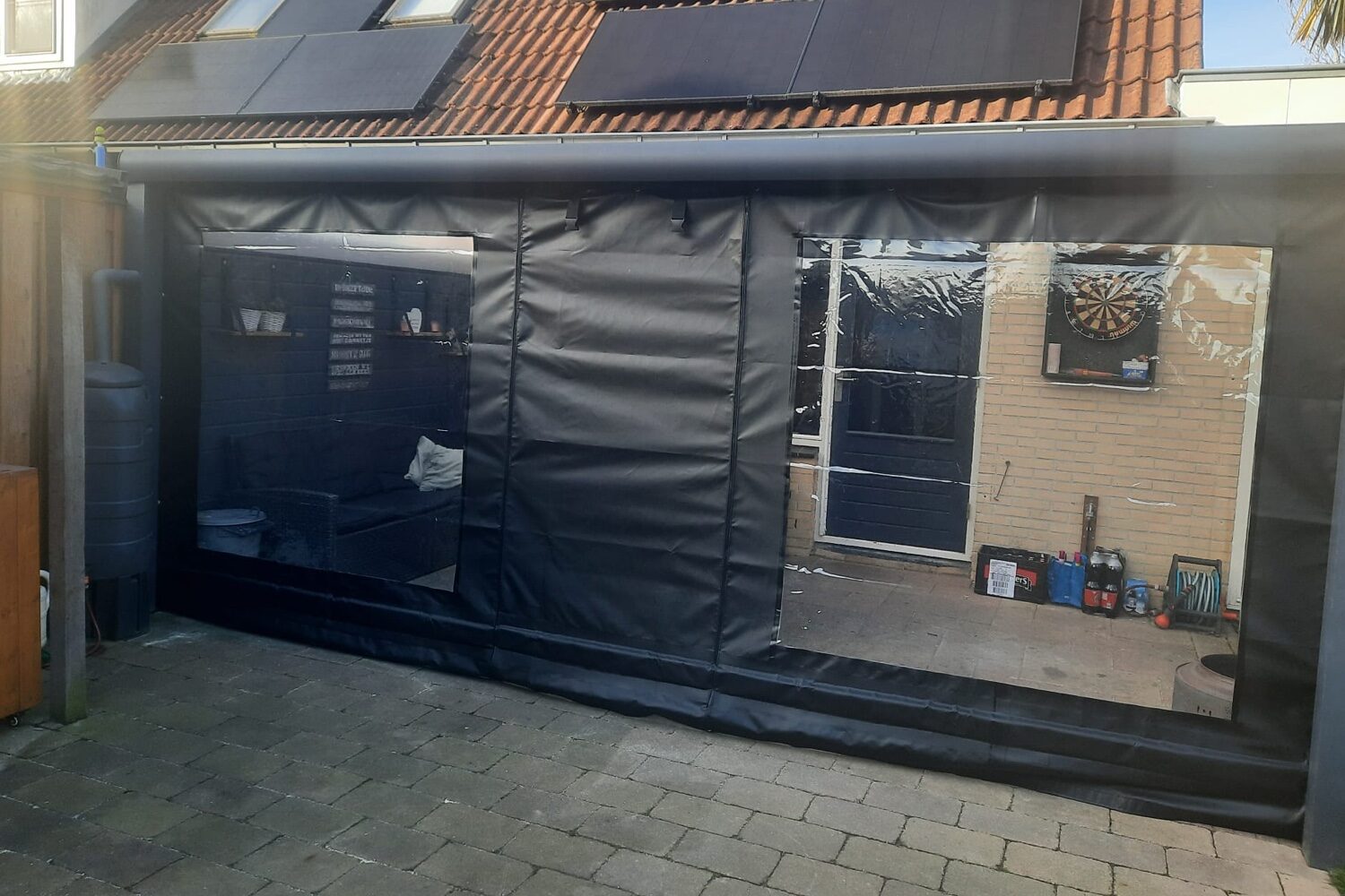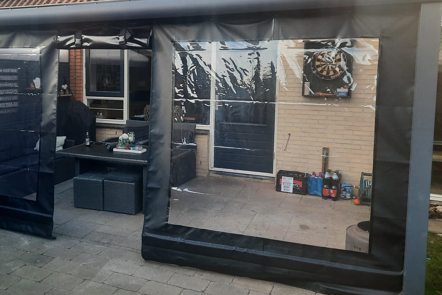 Dus het zeil is volledig transparant maar de 5cm rand beschikt over een zwarte binnenlaag.