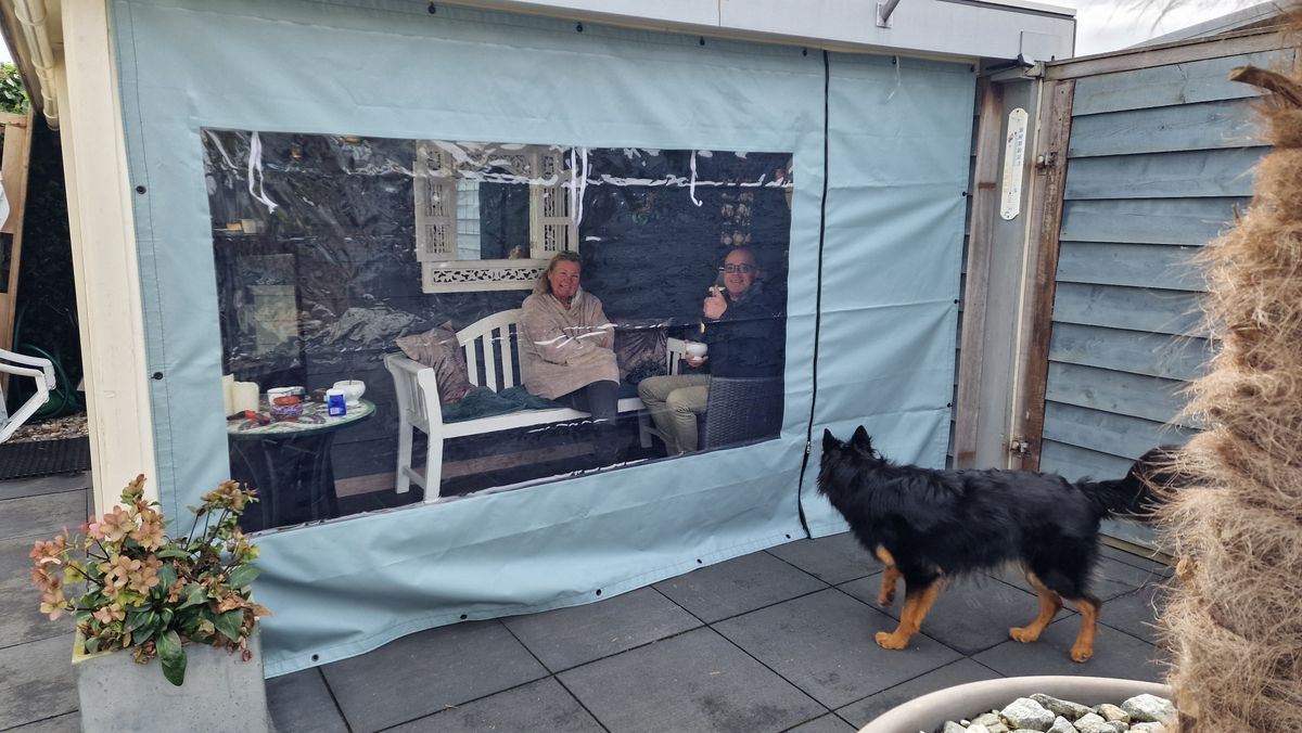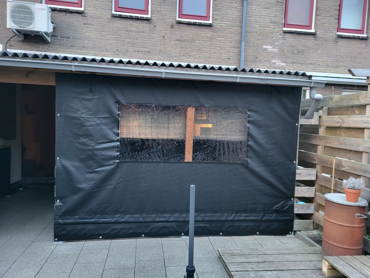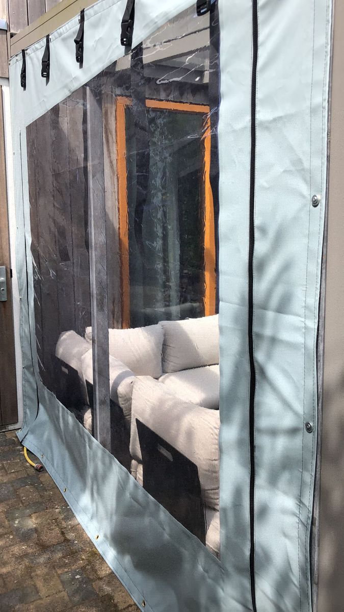 Dit is een prima zeil. Het past mooi aan de voorkant van ons tuinhuis. Op een wat kille zomeravond doen we het naar beneden en zitten dan lekker warm. Bestellen ging makkelijk via de website. Bevestigen gaat makkelijk met de bijbestelde tourniquettes. De RVS schroeven zaten er ook bij. We zijn er erg blij mee!