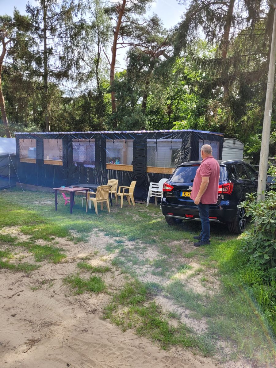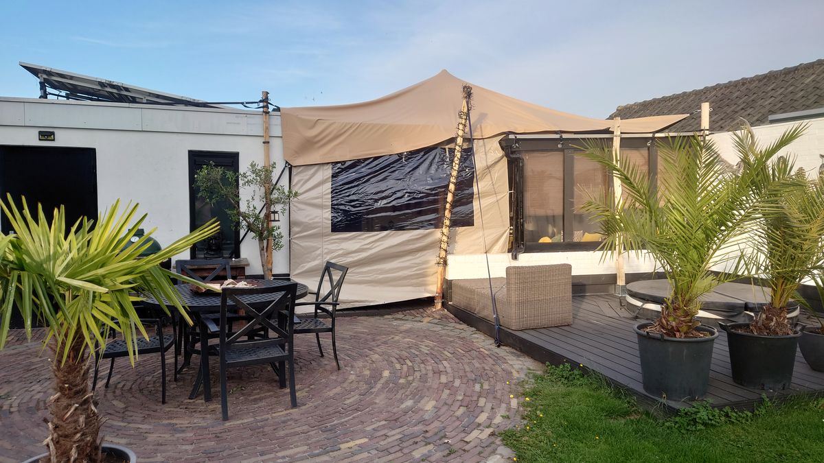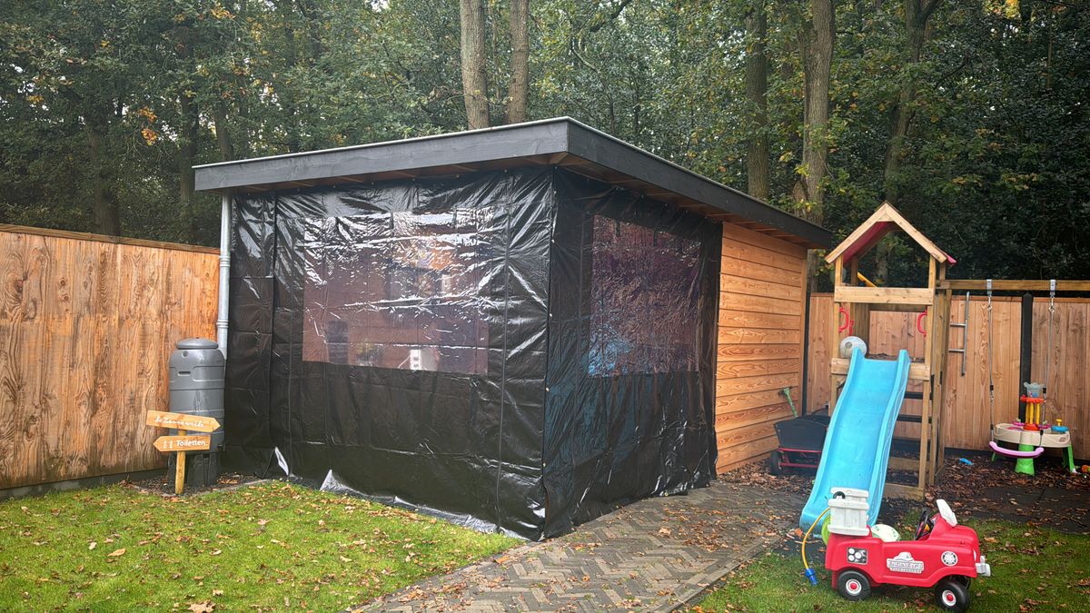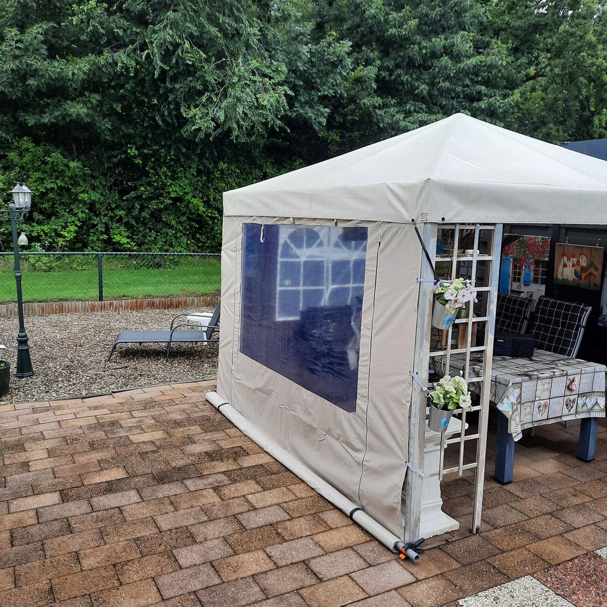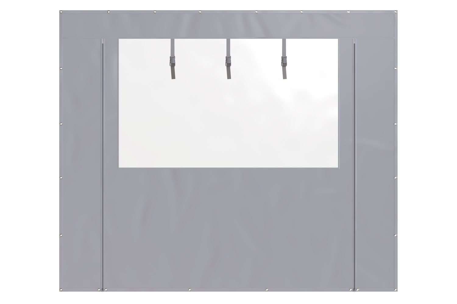 De zijwand heeft 1 raam van dik raamfolie gecentreerd in het midden van het zeil.