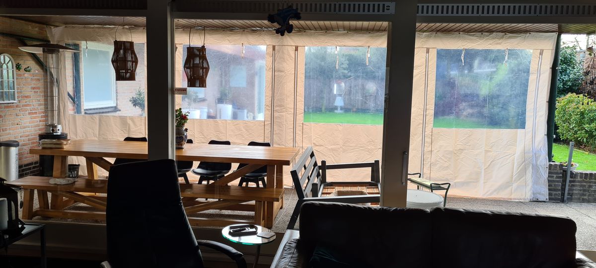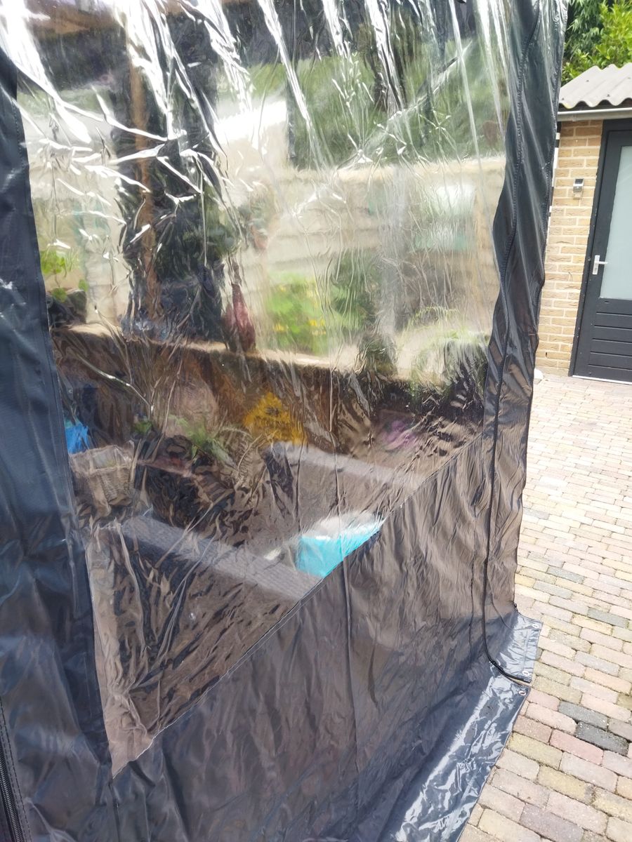 1 review voor Overkapping zijwand PVC met raam en ritsen | 8 meter breed | 250cm hoog