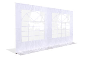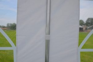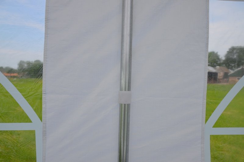 De partytent 4×4 PE is voorzien van zeilen die volledig bestaan uit PE-materiaal met een gewicht van 200 gr/m². Wat de dakzeilen betreft, zijn de naden gelast in plaats van gestikt, wat resulteert in een volledig waterdicht dak. Deze zeilen zijn UV-bestendig en waterdicht, en het dak bestaat uit één stuk met flappen op de hoeken om de naden tussen de zijwanden en kopse kanten af te sluiten. De zijwanden zijn voorzien van lichtdoorlatende vensters met een boogvenstermotief, en zowel de voor- als achterkant hebben ritsen om oprolbare deuren te creëren. Bovendien hebben alle zeilen van de partytent 4×4 PE tochtflappen aan de onderkant om regen, wind en vuil buiten te houden.