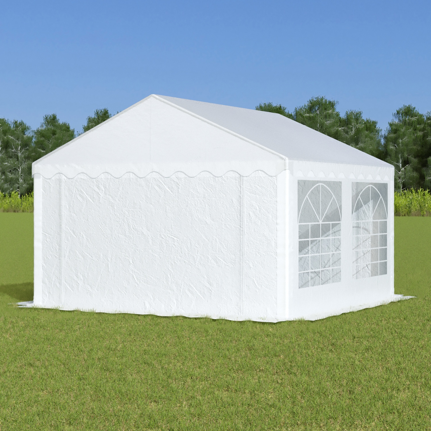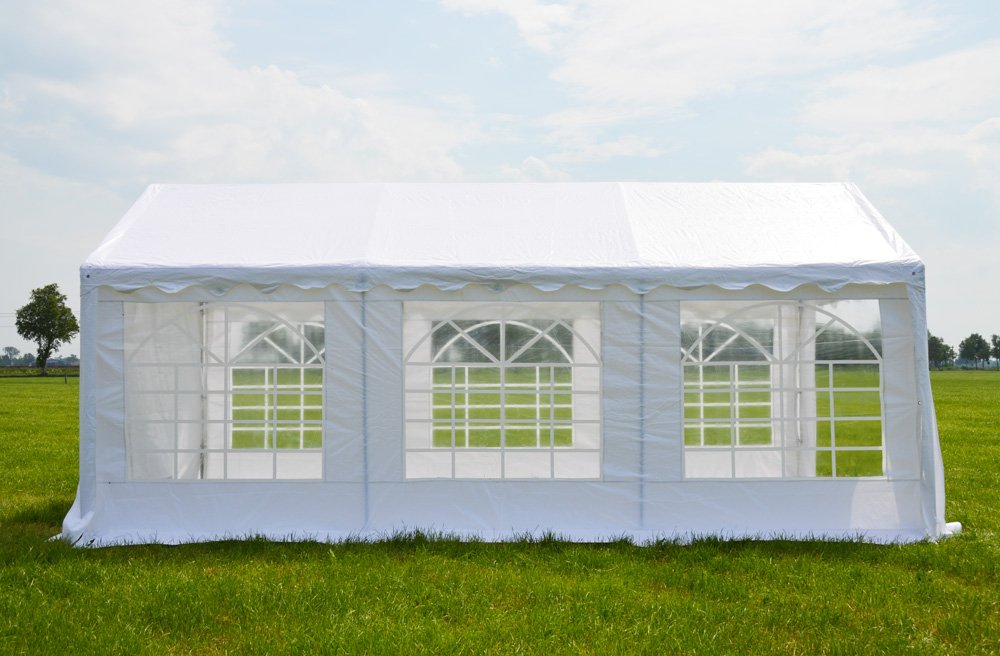 Deze vierkante partytent biedt een ruimte van 16m² en heeft een afmeting van 4 meter in zowel de breedte als de lengte. Het frame van de partytent is vergelijkbaar met dat van de PVC Classic serie, bestaande uit stevige roestvrije buizen met koppelstukken die stevig vastgezet kunnen worden. Deze partytent is ideaal voor feestjes met 15-25 personen. De lichte maar duurzame PE-zeilen maken het opzetten van de partytent 4×4 PE snel en eenvoudig. Je hebt de mogelijkheid om de zijwanden en kopse kanten van de partytent te verwijderen om een open ruimte te creëren.