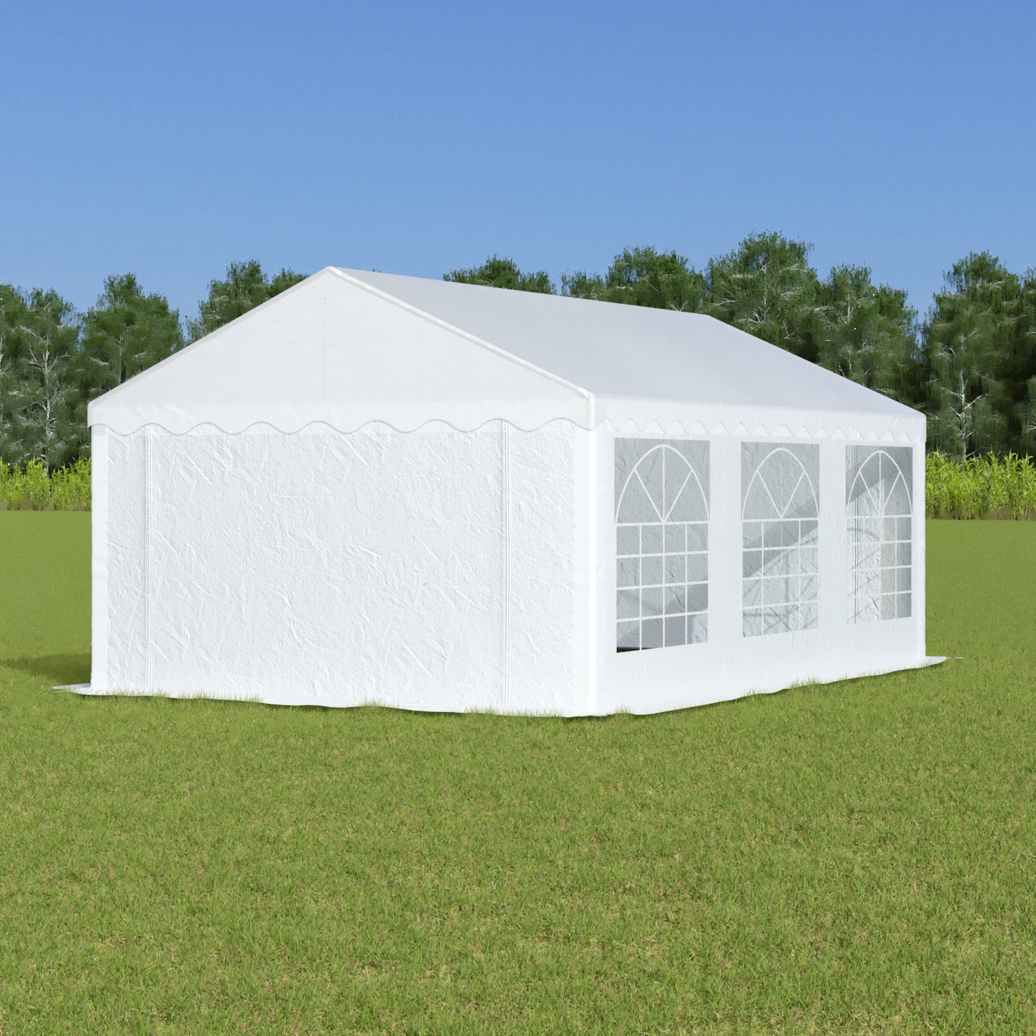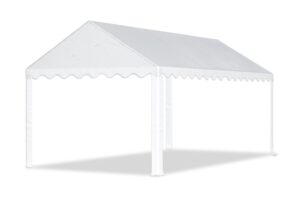 Alle zeilen van deze 4×6 feesttent zijn vervaardigd uit PE-materiaal met een gewicht van 200 gram per vierkante meter. Het dakzeil is voorzien van gelaste naden, wat zorgt voor een volledig waterdichte afwerking.
