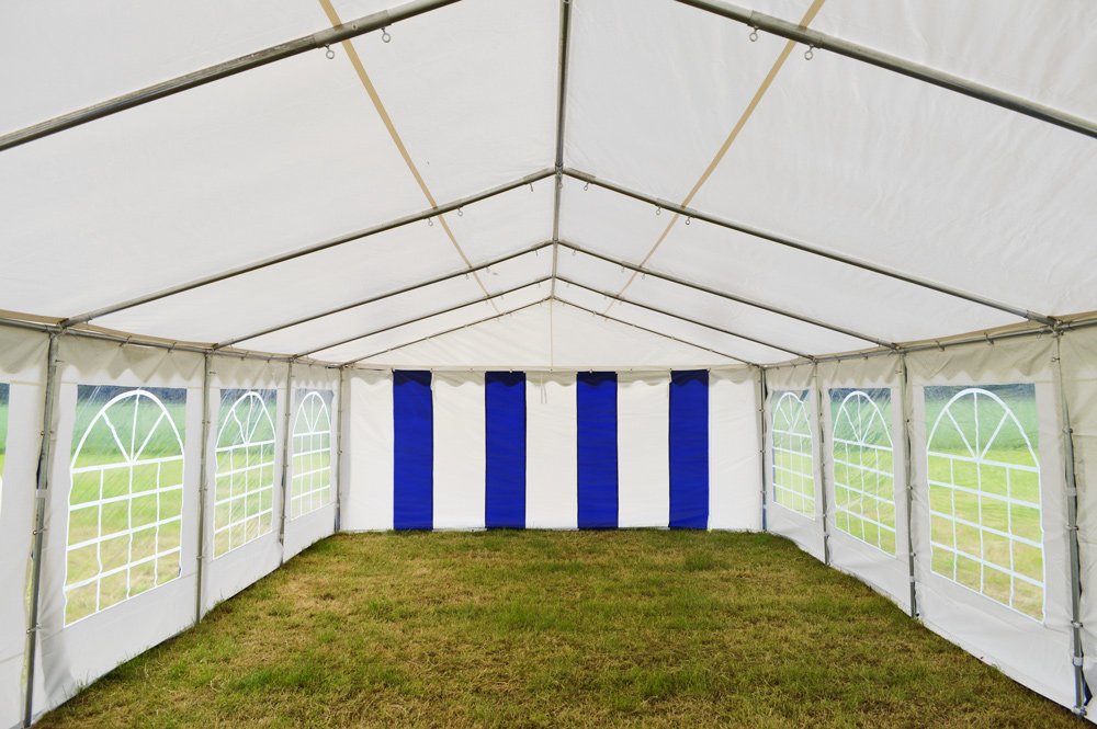 De zeilen van de PVC Classic serie partytenten zijn gemaakt van 500 gram per m² PVC. PVC staat bekend om zijn brandvertraging, UV-bestendigheid, volledige waterdichtheid en buitengewone sterkte. In vergelijking met dunne PE-zeilen van sommige bouwmarkten, biedt PVC aanzienlijk meer duurzaamheid. Het dakzeil is één geheel met gelaste naden, wat resulteert in een superieure sterkte en volledige waterdichtheid. Alle 10 zijwanden van de partytent 5×10 zijn gemaakt van hetzelfde kwaliteits-PVC.