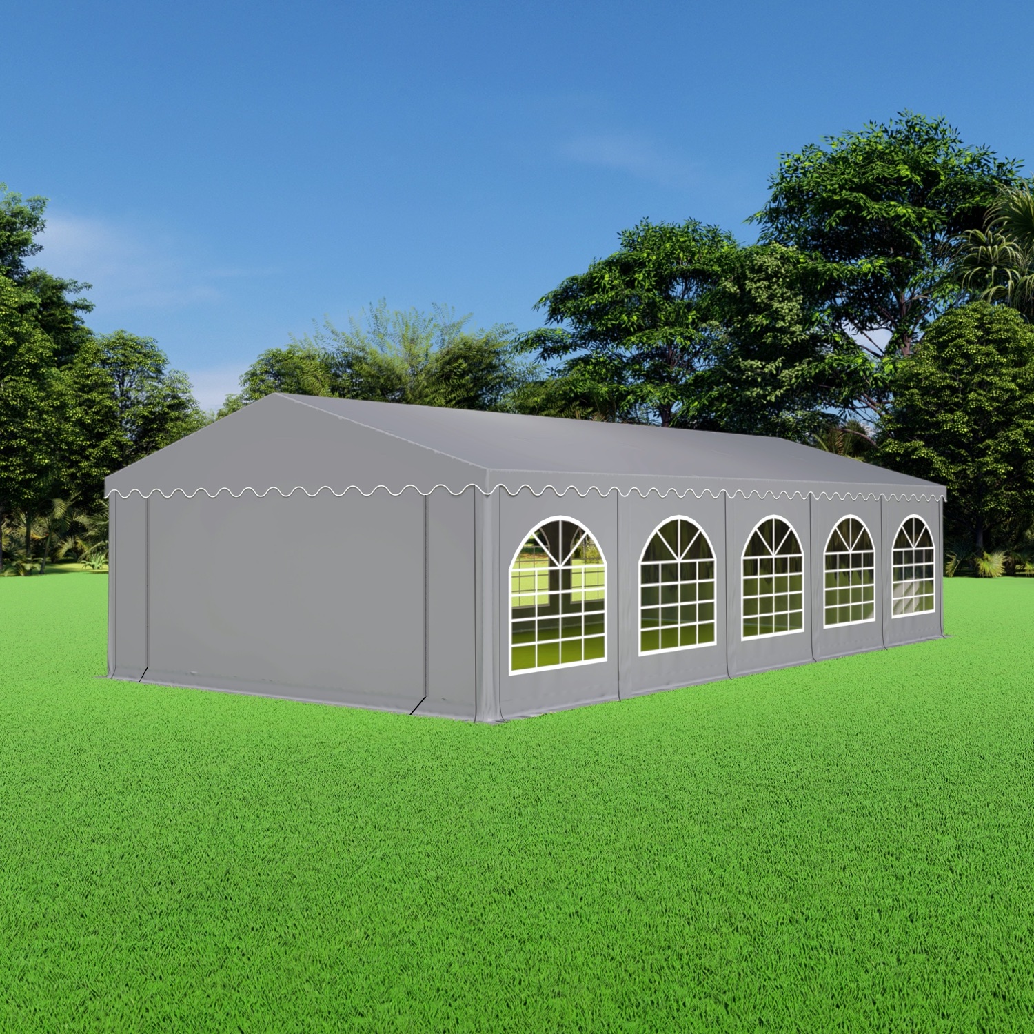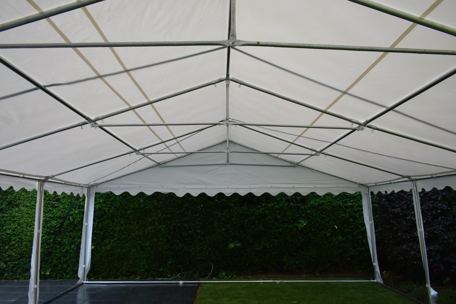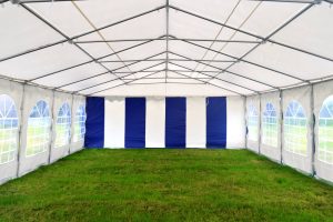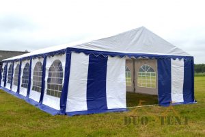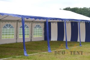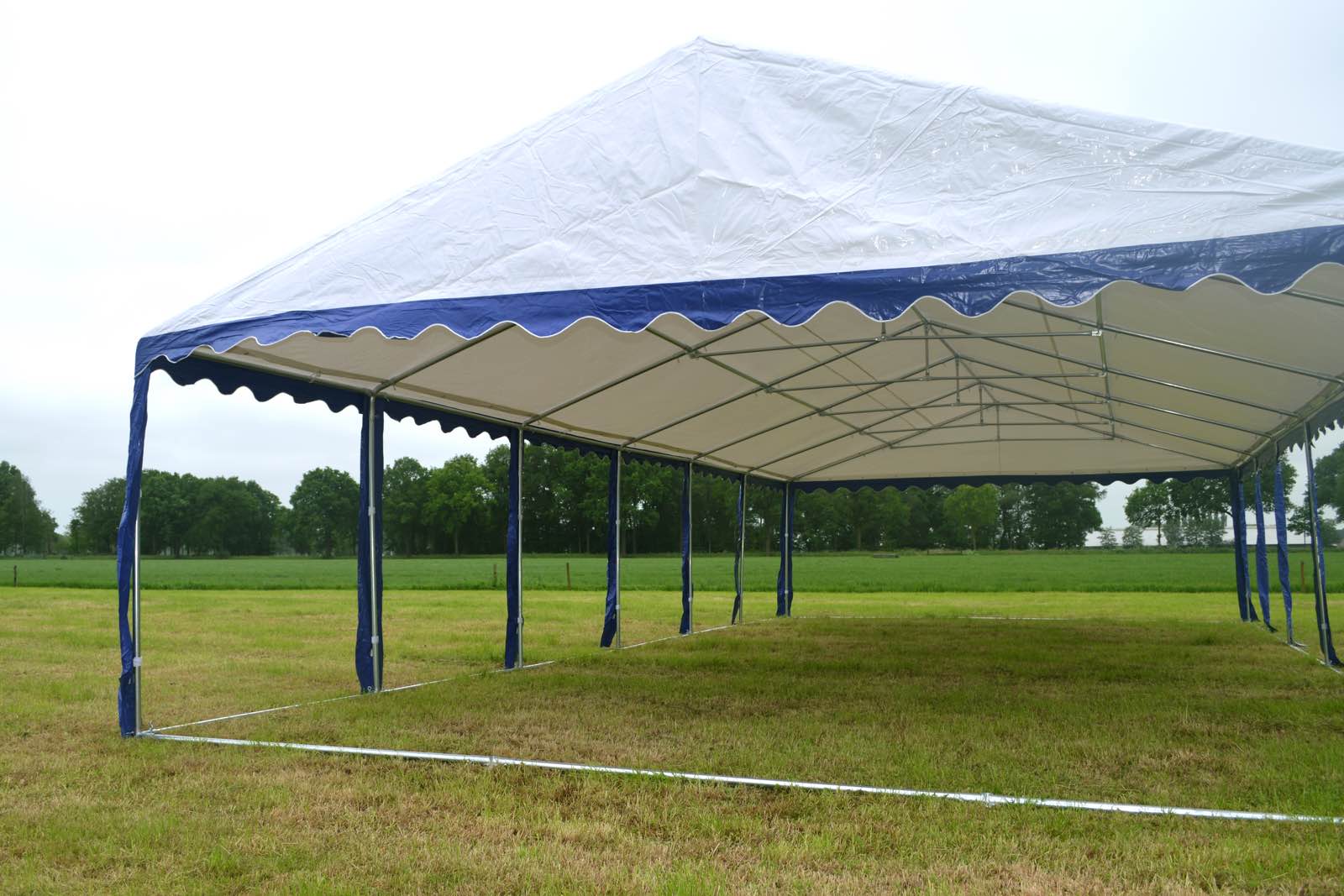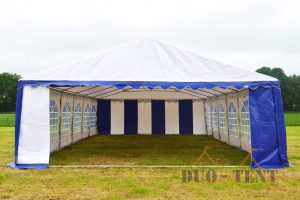 Uiterst stevige partytent met een uitgebreid buizenframe inclusief nokverstevigings buizen en grondbuizen. De zeilen van de premium partytenten bestaan zijn gemaakt van brandvertragend pvc met een gewicht van 550 gram/m²