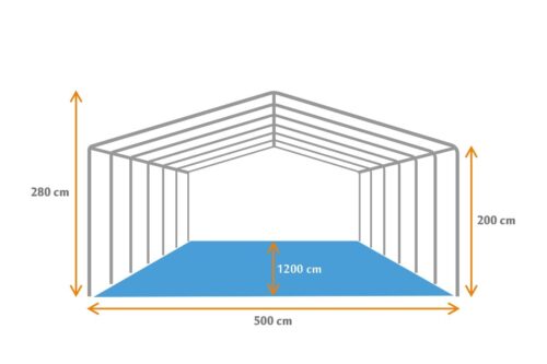 De partytent van 5 meter breed en 12 meter lang heeft een totaal oppervlakte van 60m². Hier kun je ongeveer 60-85 personen in houden. 100% waterdicht en Uv-bestendige dikke zeilen maken van deze partytent een kwaliteitsvol product. Het stevige frame zorgt ervoor dat de partytent goed op zijn plaats blijft staan.
