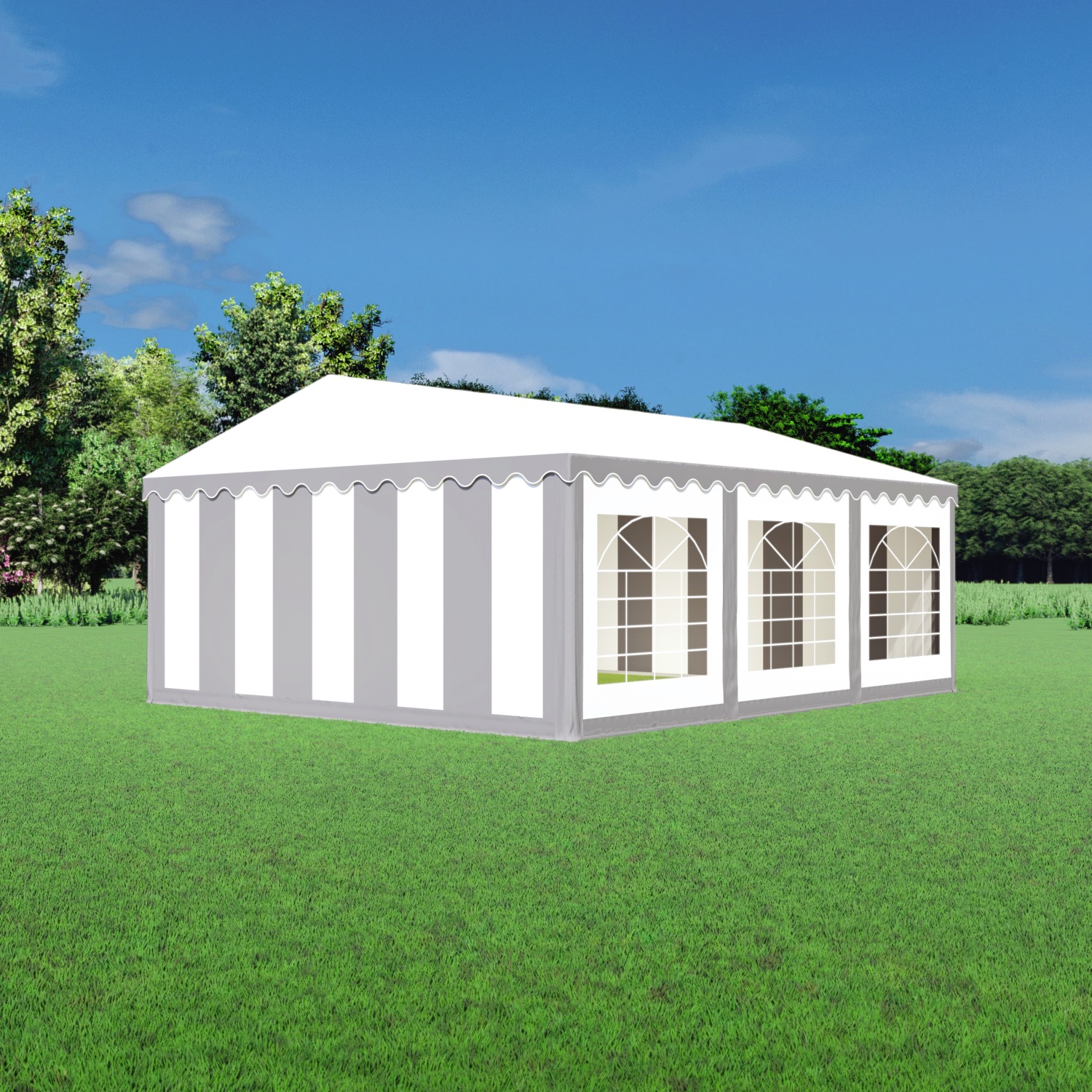 Deze ruime partytent heeft een oppervlakte van 30m², wat ideaal is voor feesten met 30 tot 50 gasten. De sterke, UV-bestendige zeilen zijn volledig waterdicht en dragen bij aan de duurzaamheid van deze hoogwaardige partytent. Dankzij het solide frame blijft de tent stevig op zijn plek staan, zelfs in wisselende weersomstandigheden.