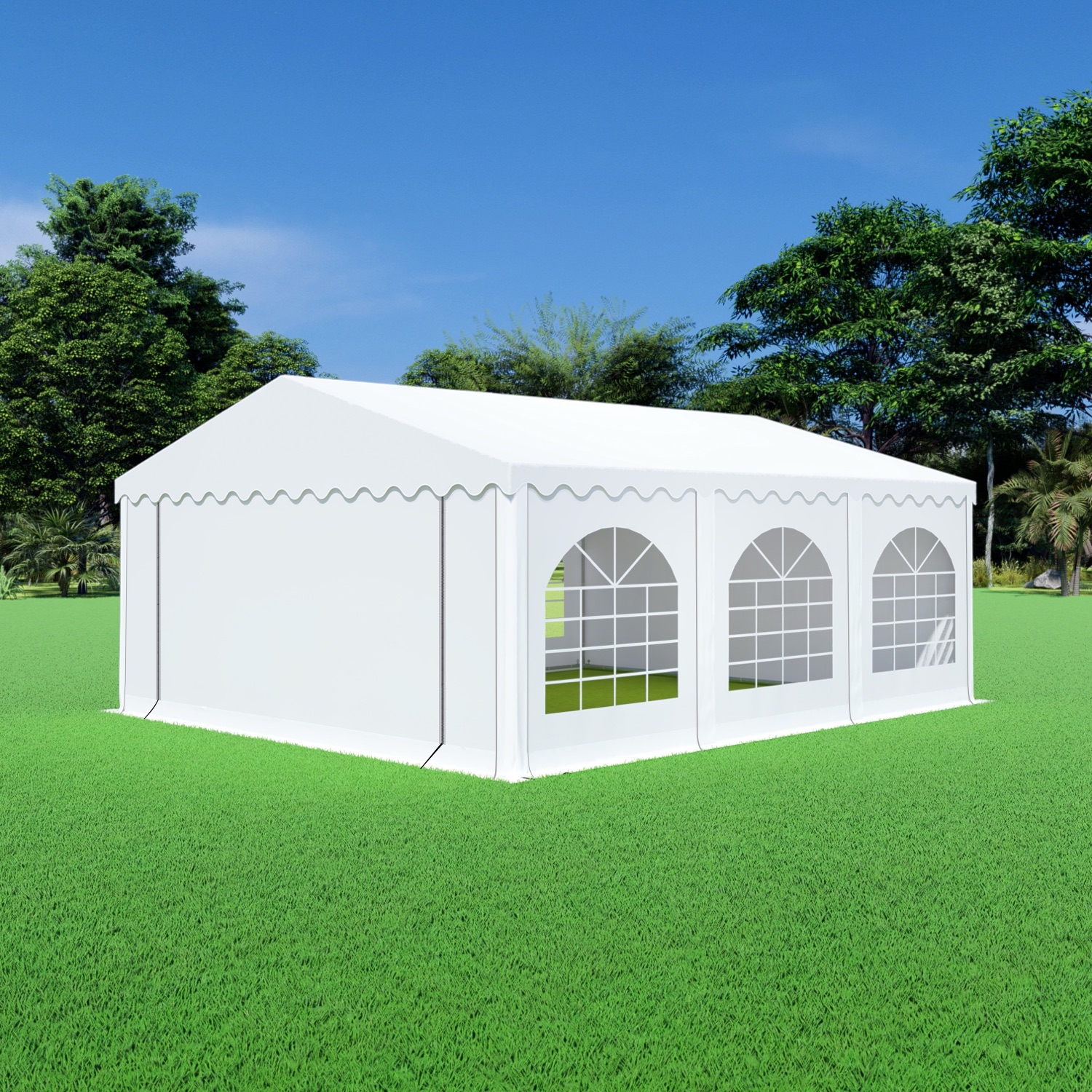 Uiterst stevige partytent met een uitgebreid buizenframe inclusief nokverstevigings buizen en grondbuizen. De zeilen van de premium partytenten bestaan zijn gemaakt van brandvertragend pvc met een gewicht van 550 gram/m²