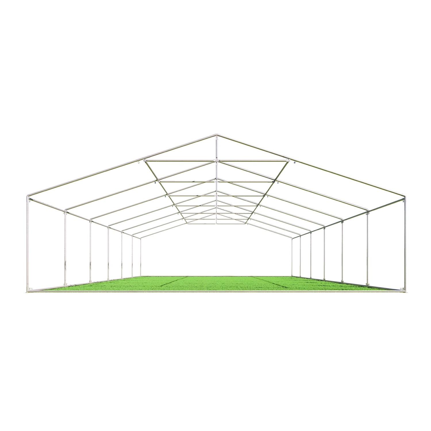 Het zeer uitgebreide frame van de partytent 8×12 is vervaardigd uit buizen met een diameter van 38mm en een wanddikte van 1,2mm. De koppelstukken hebben een diameter van 42mm met een wanddikte van 1,4mm. De buizen passen exact in de koppelstukken en worden vastgezet met bouten dwars door de buizen en aangedraaid met oogmoeren. De partytent PVC premium 8×12 heeft een grondframe en nokversteviging. Deze toevoegingen aan het frame geven de tent extra veel stabiliteit en is een must bij deze afmeting. De staanders worden met haringen vastgezet in de ondergrond.