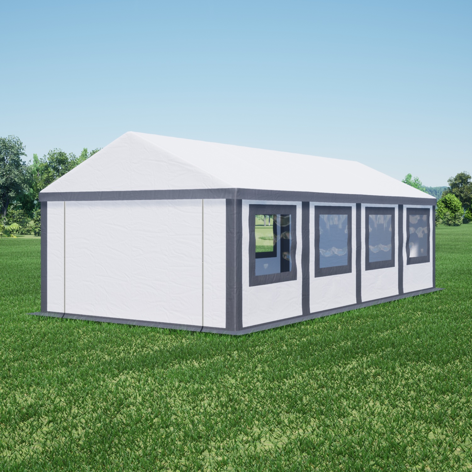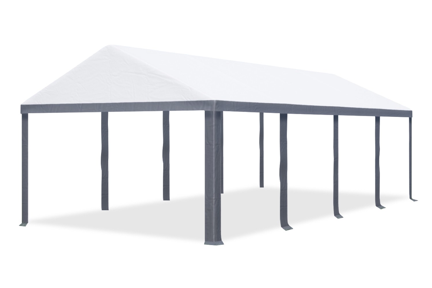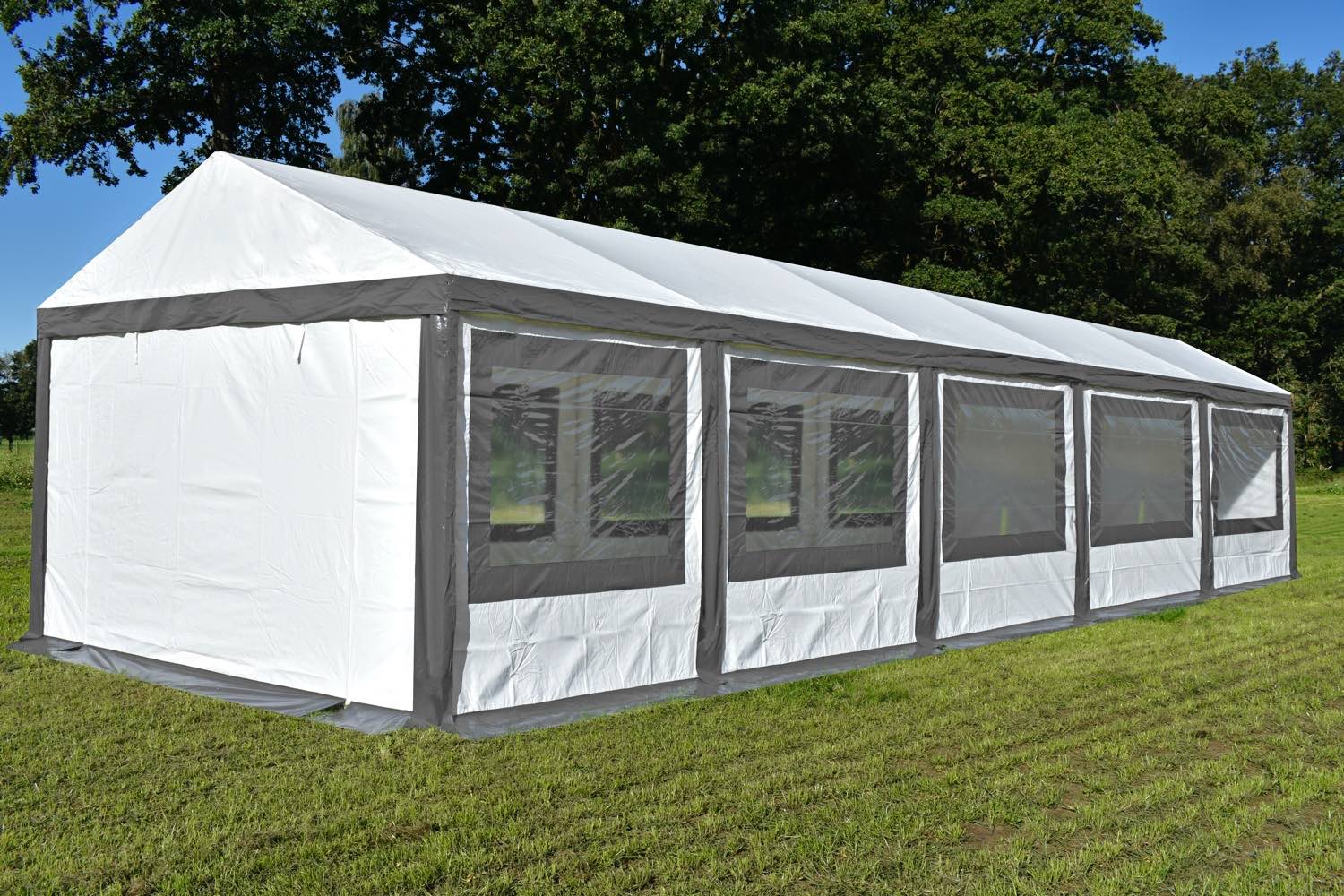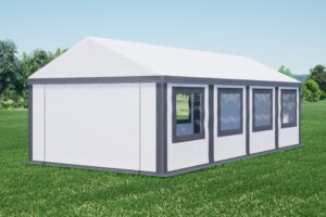 Het dakzeil is van hoogwaardige kwaliteit en biedt verschillende voordelen. Het is brandvertragend gelabeld en vervaardigd uit 550 gram per m² PVC, wat zorgt voor een stevige en duurzame constructie. Daarnaast zijn er tochtflappen met klittenband bij elke staander voor extra bescherming, en messing oogringen voor de bevestiging van elastieken. De naden zijn geseald in plaats van gestikt, wat de sterkte aanzienlijk vergroot. Het zeil is volledig UV-bestendig en 100% waterdicht, waardoor het uitermate geschikt is voor langdurig gebruik onder diverse weersomstandigheden.