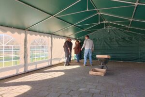 Dit zeil, vervaardigd uit PVC met een gewicht van 550 gram per vierkante meter, is uitgerust met oogringen rondom voor eenvoudige bevestiging aan de tent. De kopse wand beschikt over een tochtflap van 30 cm aan de onderkant, wat de tent beschermt tegen wind, regen en vuil. Met een breedte van 500cm (en iets minder vanwege de pasvorm binnen de 5 meter tent), is dit zeil geschikt voor al onze 5meter brede PVC partytenten in zowel Premium als Classic modellen.