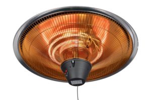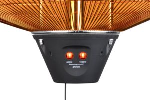 Bediening gaat eenvoudig via het koord. De heater is voorzien van dubbele carbon warmte lampen. Deze lampen verwarmen én geven een gezellig licht. Ideaal natuurlijk, in een partytent of op het terras vlak boven een statafel. Deze heater is IP24 gecertificeerd waardoor het spatwaterdicht is en dus buiten kan hangen.